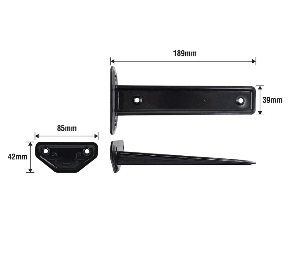 FLOATING SHELF BRACKET 190X38X20MM BLK