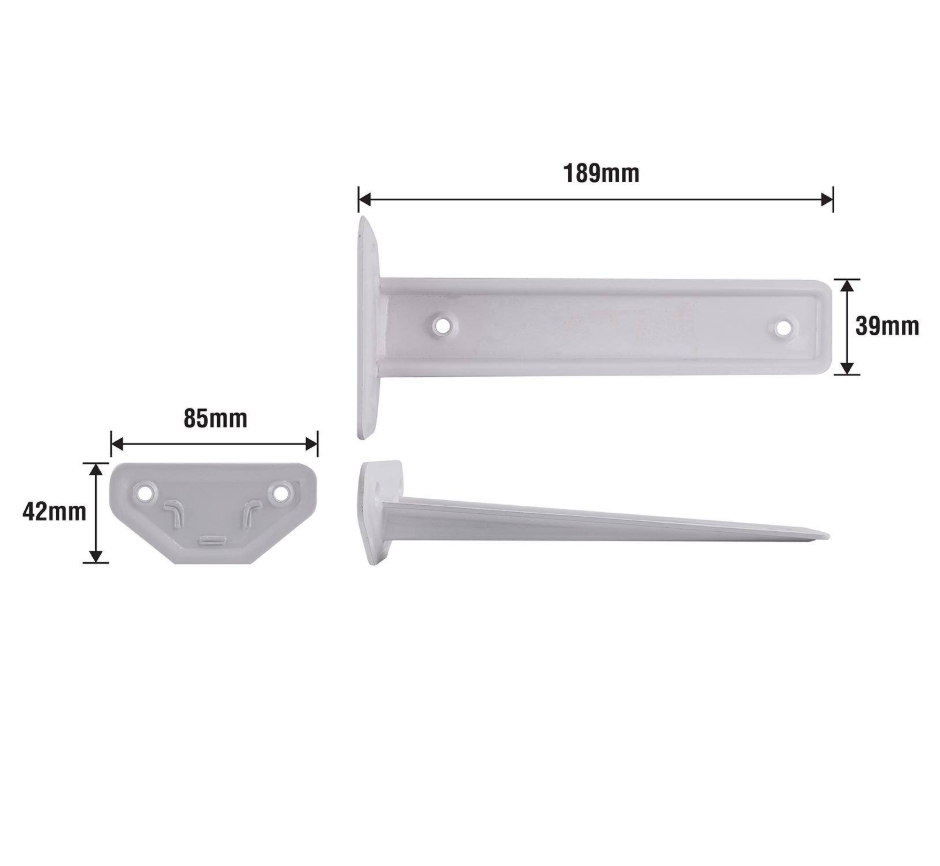 FLOATING SHELF BRACKET 190X38X20MM WHITE