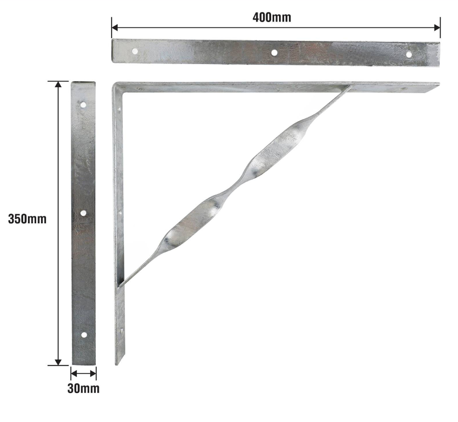 This twisted stayed bracket is engineered for high-load support in various DIY projects. Made from robust steel and finished in hot dipped galvanised, its dimensions are 400x350x30x4mm, providing reliable stability where precision and strength are required. Ideal for structural reinforcements and repairs, it offers a technical advantage for discerning DIY enthusiasts who demand practical, durable solutions.Detailed