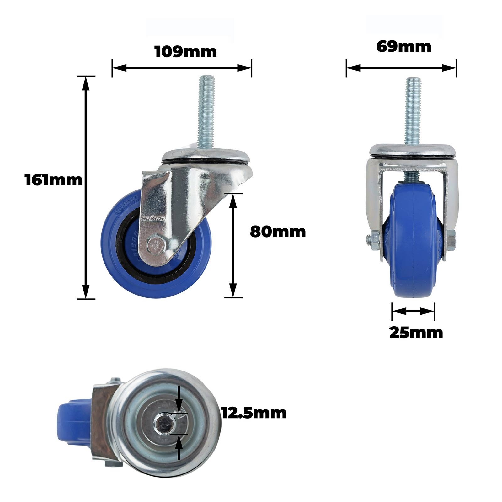 75MM Blue Rubber Swivel Expanding Bolt, engineered for dependable medium-duty performance. With a load capacity of 90kg, this castor is ideal for indoor use, providing smooth and quiet operation on various surfaces. Its robust construction ensures long-term durability, making it an excellent choice for workshops, warehouses, and other material handling tasks.Detailed