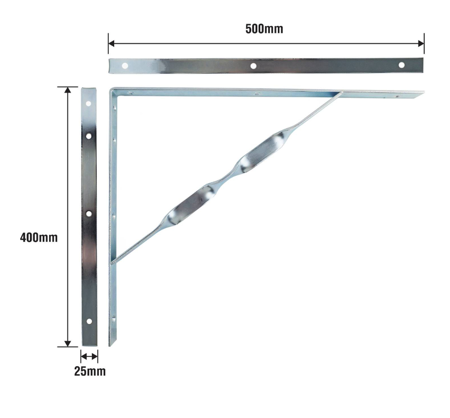 BRACKET TWISTED STAY 500X400X25X4.5MM ZINC is a robust twisted stayed bracket designed for DIY applications requiring secure support. Constructed from high-grade steel with a zinc-plated finish, it offers reliable strength by supporting loads up to 300 kgs. Its precise dimensions ensure accurate fitment in a variety of projects such as shelving, structural supports or custom fabrication. This product delivers technical performance and dependable quality for discerning DIY enthusiasts.Detailed