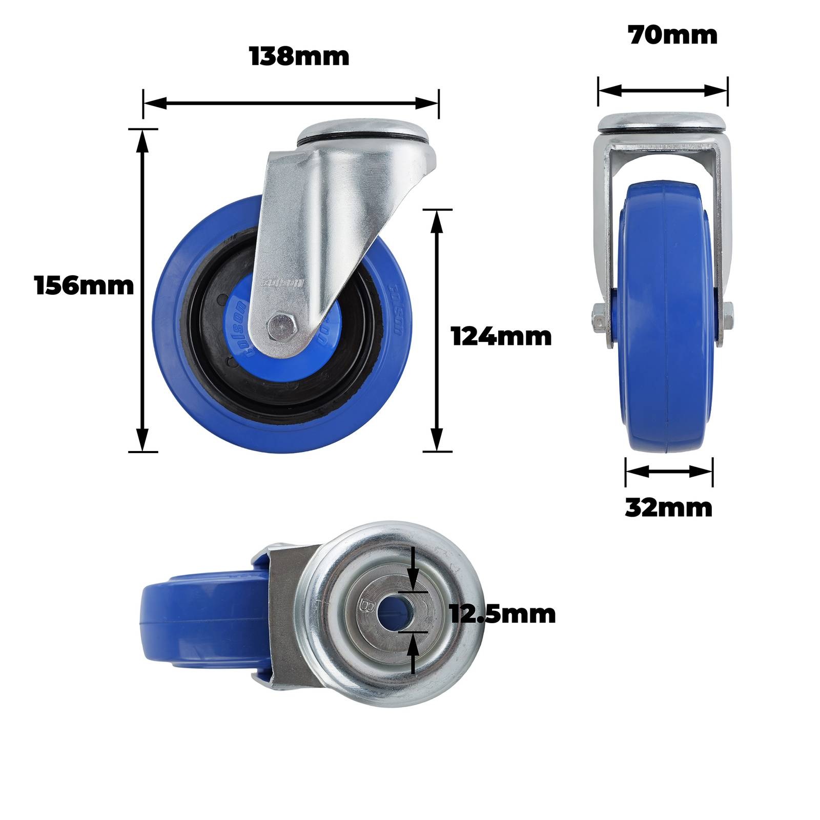 125MM BLUE RUBBER BOLT HOLE CASTOR