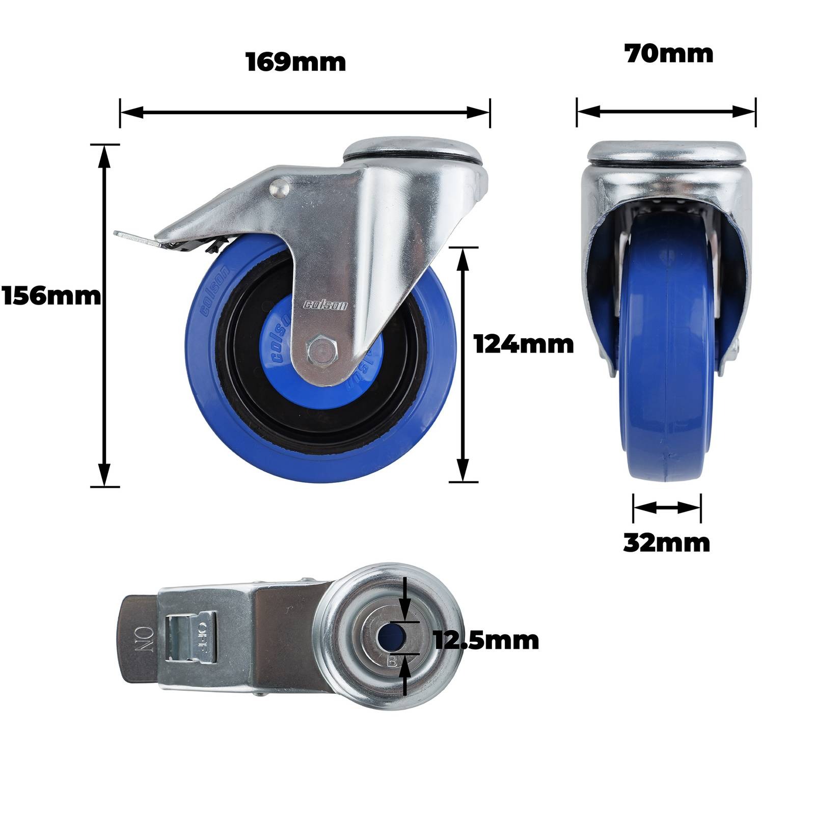 125MM BLUE RUBBER BOLT HOLE BRAKE CASTOR