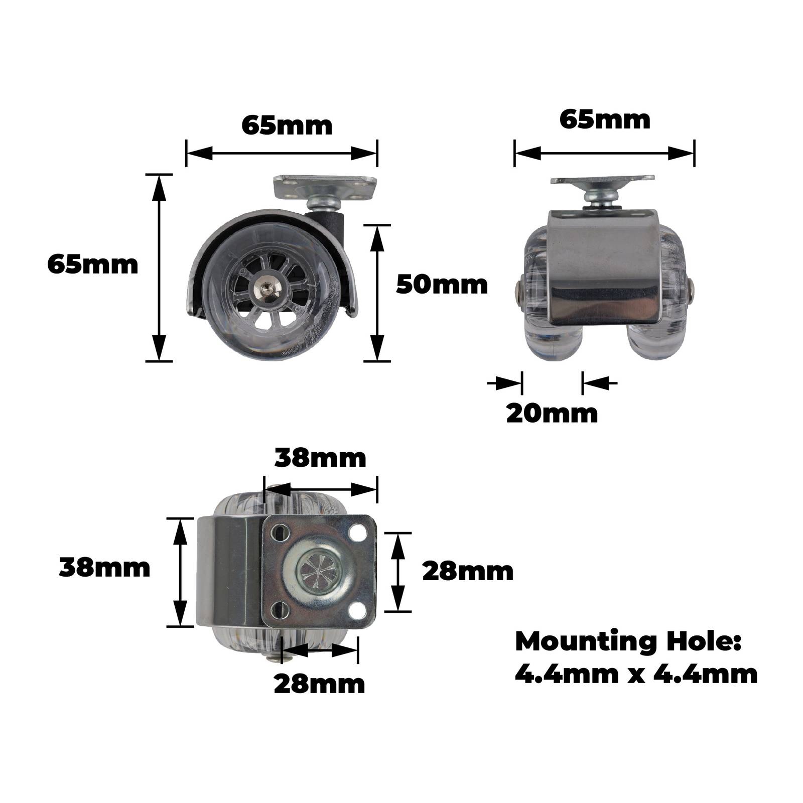 50MM TWIN CLEAR FURNITURE CASTOR