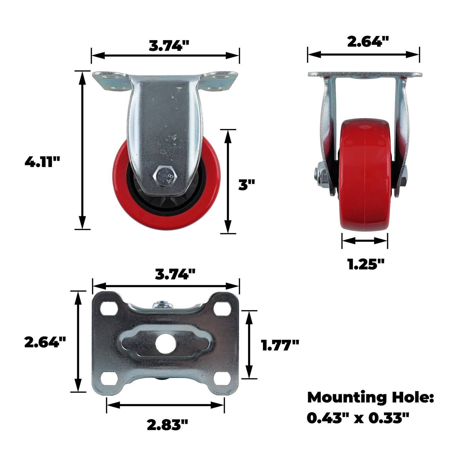 3 in. Red Polyurethane and Steel Rigid Plate Caster with 175 lb. Load Rating