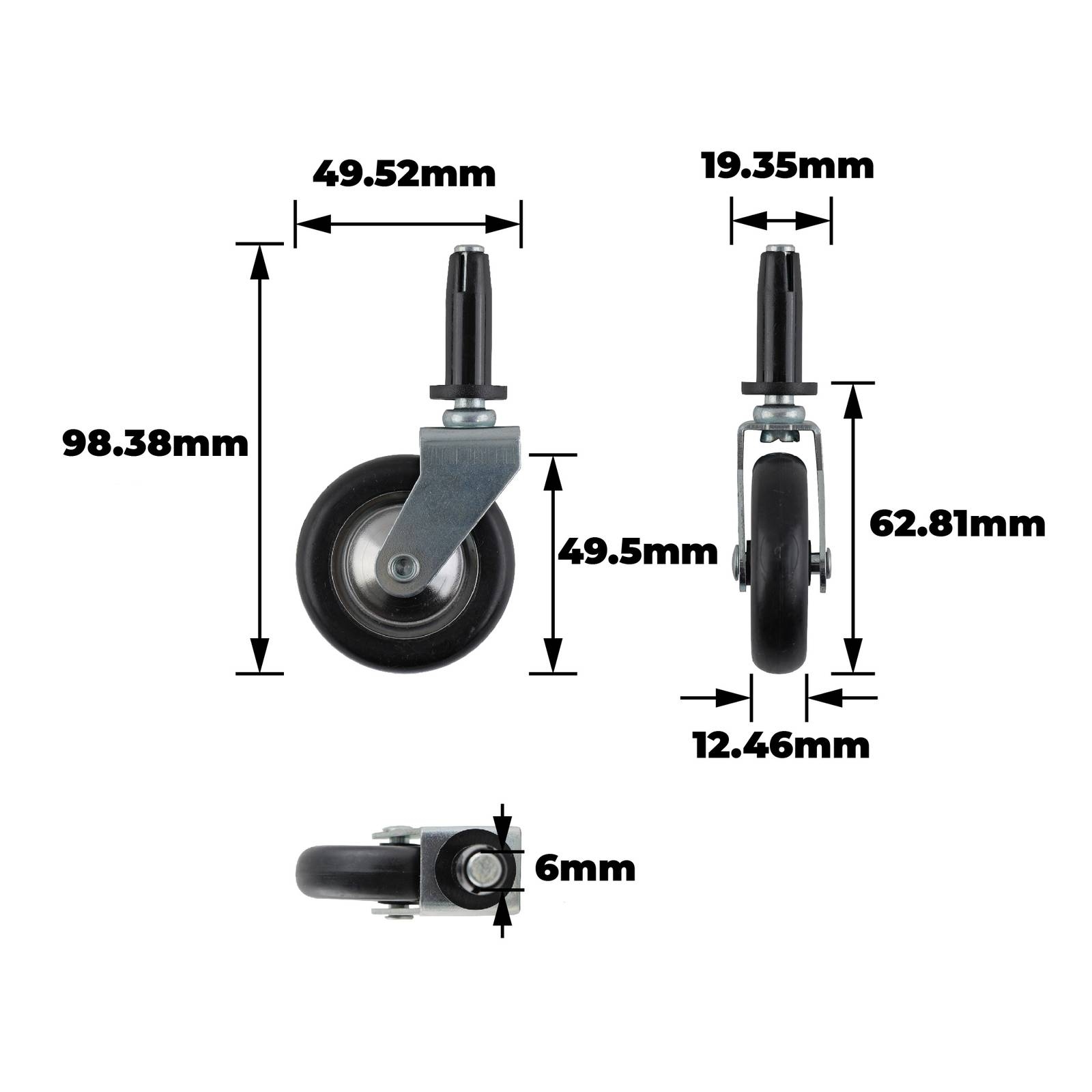 Black PVC Swivel Wheel is a robust and reliable castor designed for DIY and technical projects. With a 50mm wheel crafted from PVC and a nickel plated fixture, this unit meets practical load handling requirements. Featuring an M10x34mm shank and a steel housing, it provides smooth swivel action and secure mounting. Its precise specifications and utilitarian design offer dependable performance for workshop or on-site projects.Detailed