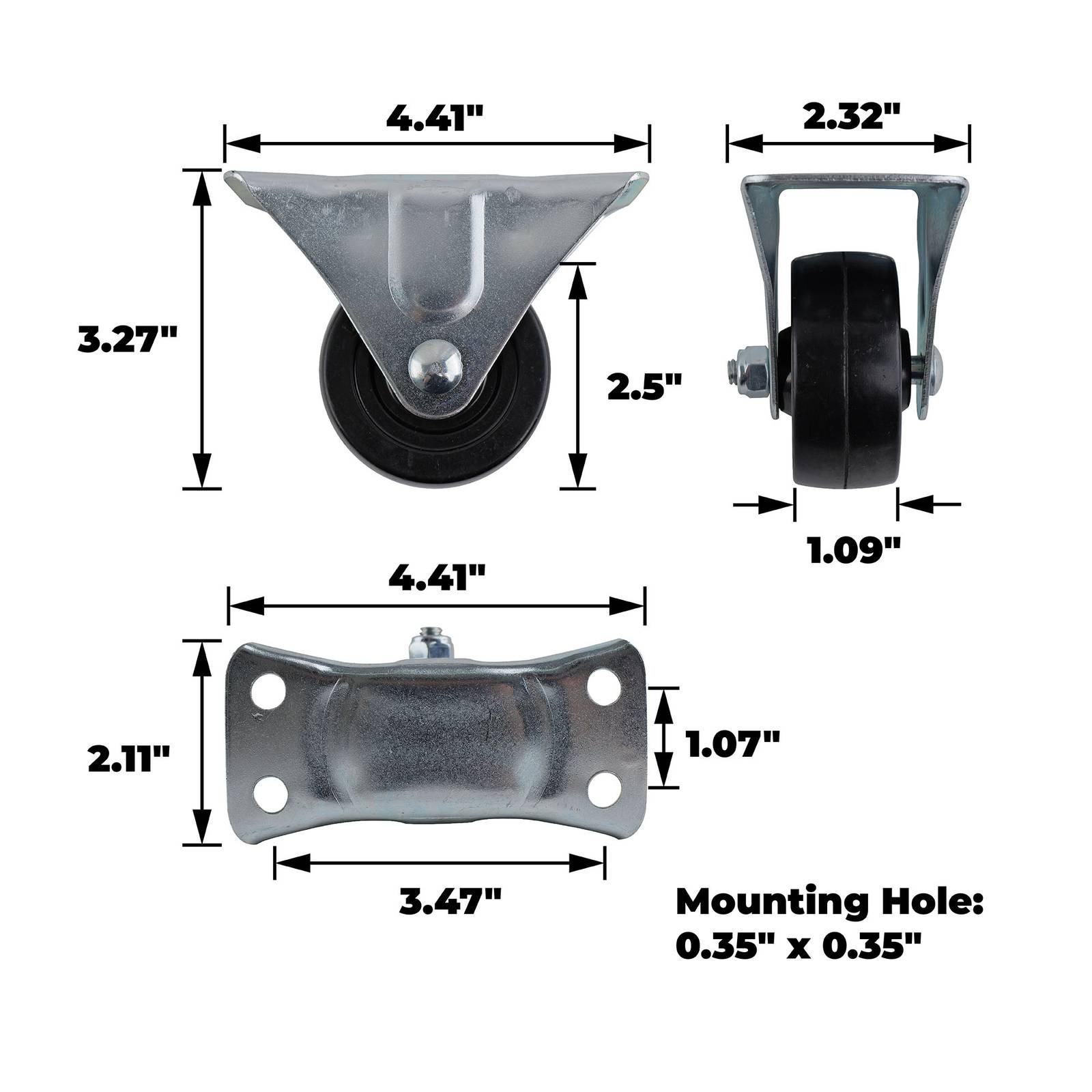 2-1/2" DIAMETER WHEEL RIGID RUBBER MEDIUM DUTY is a rigid caster designed for DIY projects requiring reliable movement and durability. Its medium duty design and plain bearing system ensure smooth operation under loads up to 100 lbs. The rubber wheel and steel housing offer resilience and consistent performance, making it particularly suitable for practical applications in retail and online settings. This caster delivers technical precision, enhancing mobility and longevity in various maintenance and industrial tasks.Detailed