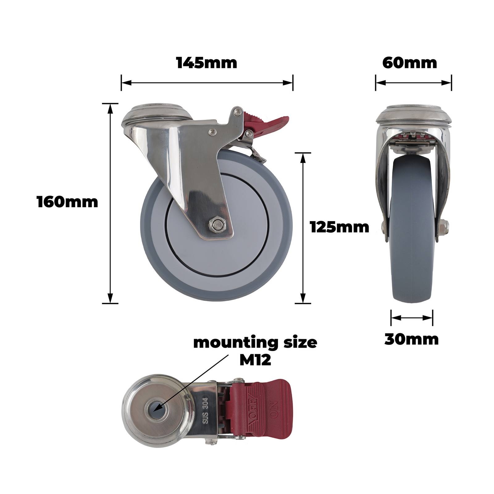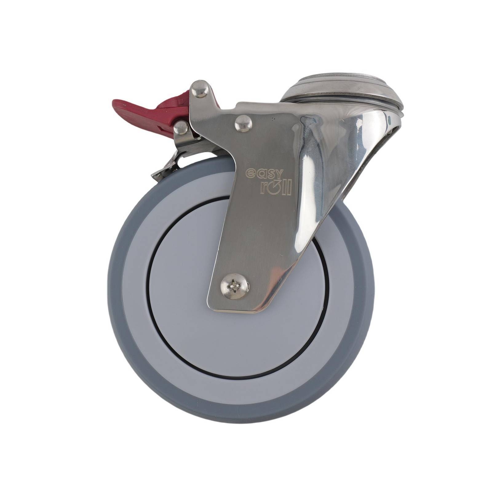 SS 125MM GREY RUBBER BOLT HOLE BRAKE CASTOR