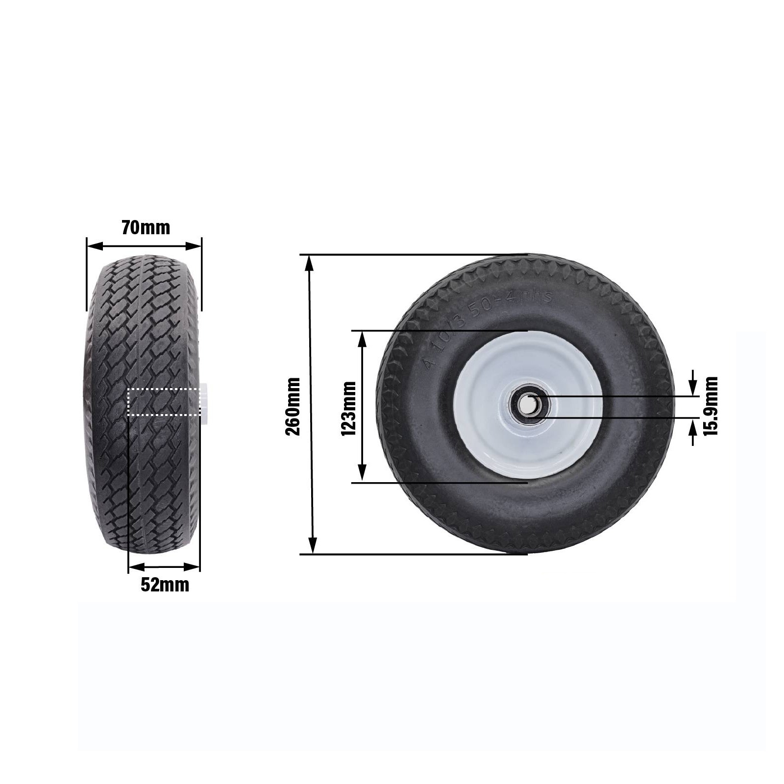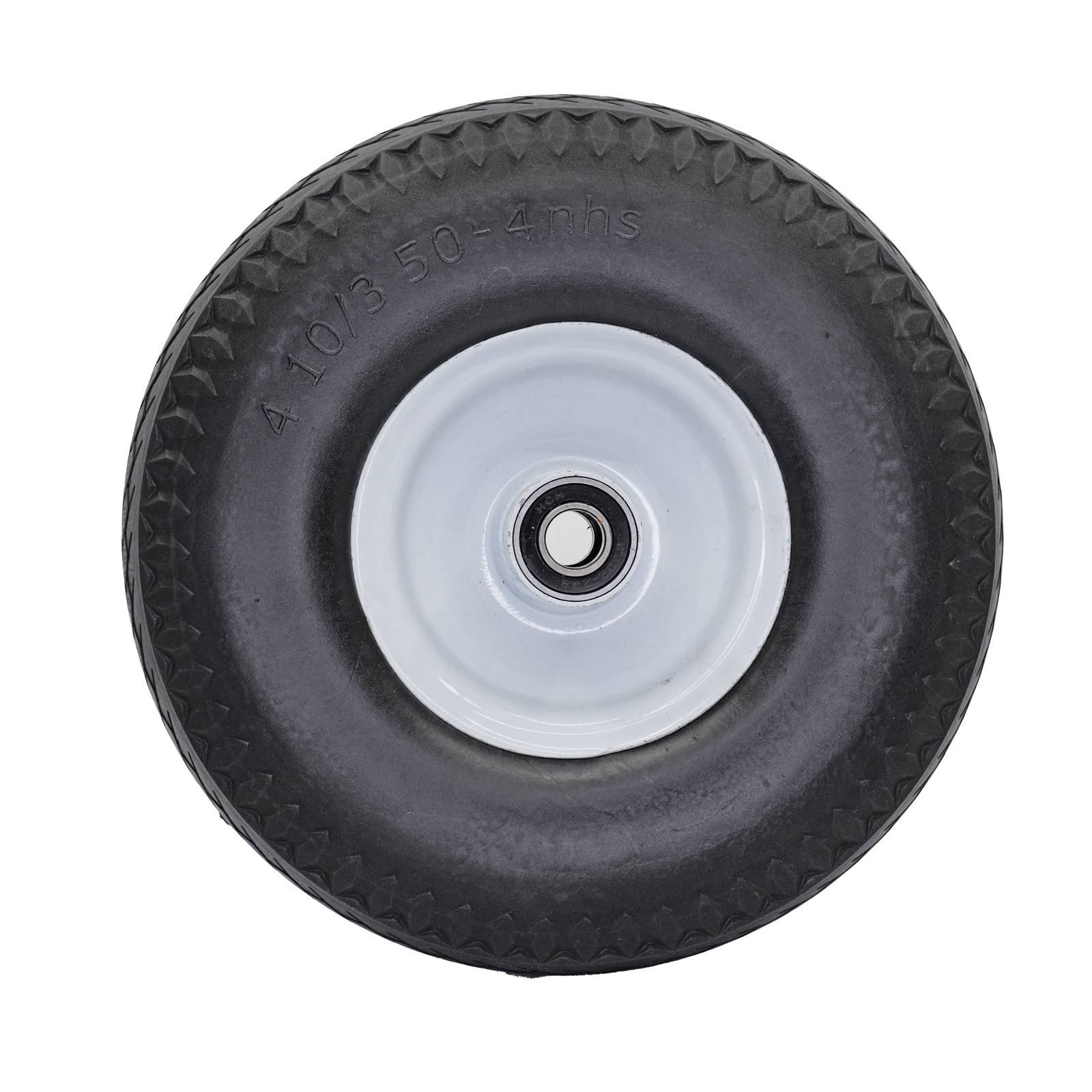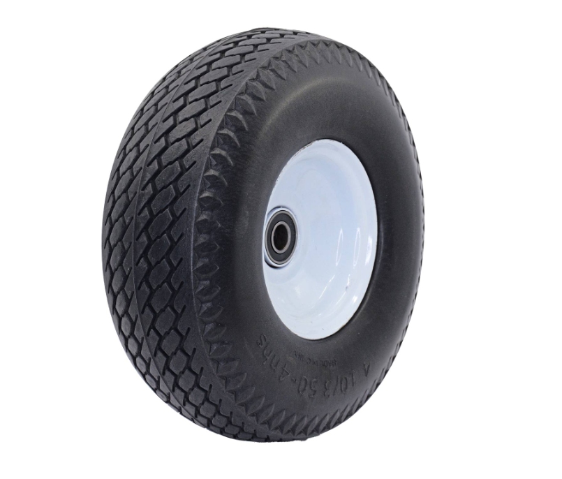 easyroll - WHEEL FLATFREE 350X4 STEEL 5/8This robust flat free wheel is designed for DIY projects requiring reliable, maintenance-free movement. Its ball bearing system ensures smooth rotation while distributing load evenly across a capacity of 80 kgs. Constructed using steel and carbon steel components, it offers long-lasting durability. The polyurethane tyre provides dependable traction on various surfaces, making it a practical choice for medium-duty applications and equipment upgrades.