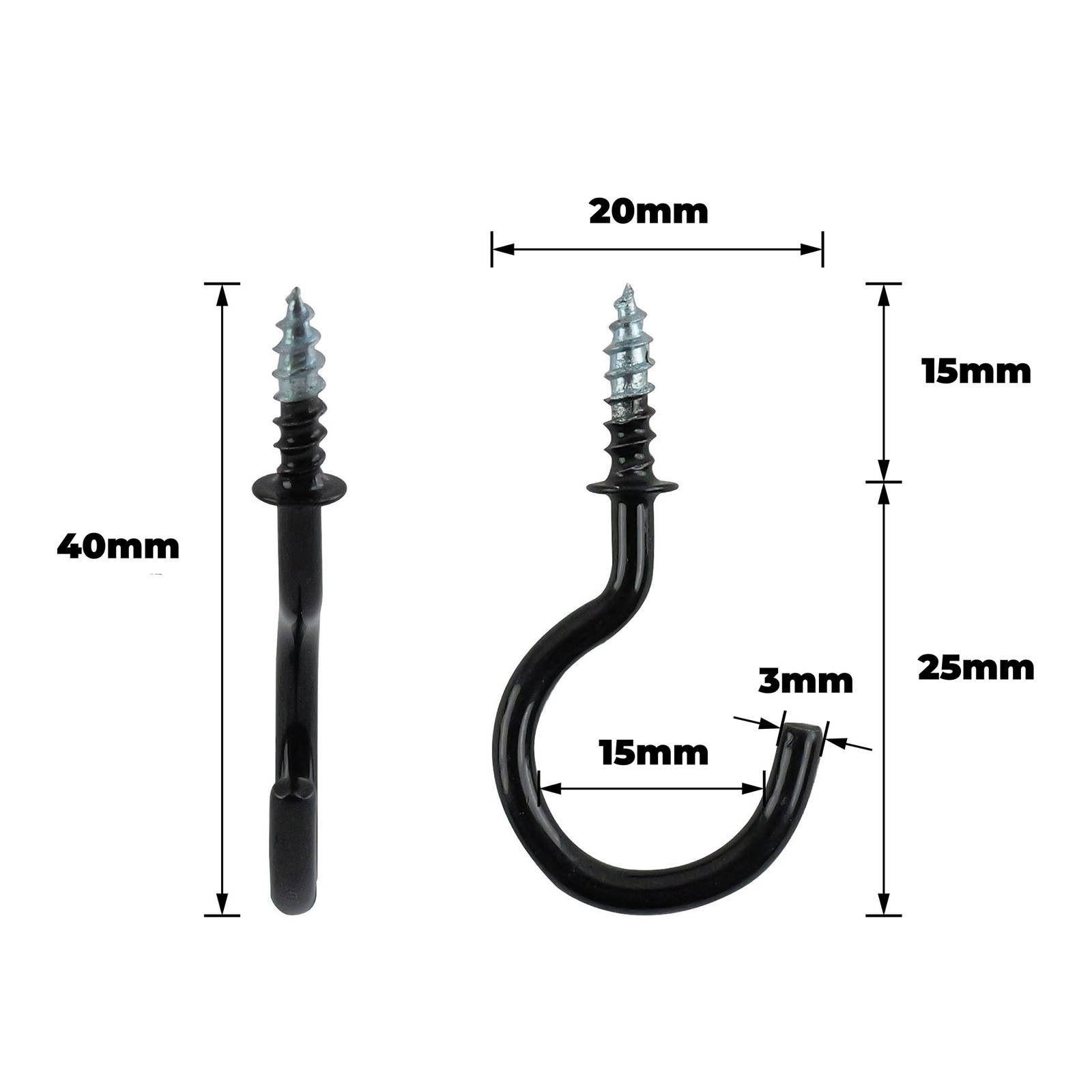 CUP HOOK 25 BLACK POWDER COATED 10PK BAG SIZE: This practical set of durable steel cup hooks is designed for the technically inclined DIY enthusiast. The black powder coated finish offers excellent corrosion resistance, making them suitable for both residential and workshop applications. Perfect for hanging cups, tools and small fixtures, these hooks deliver consistent performance. The 10-pack in LDPE packaging ensures reliable, organised installation and value for precision-driven projects.Detailed