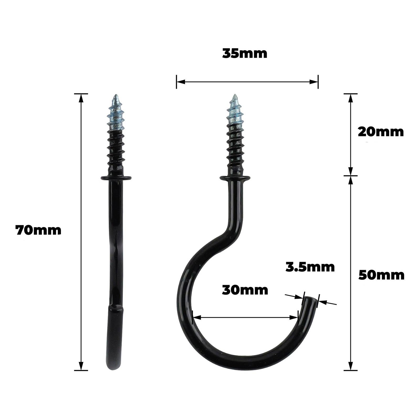 CUP HOOK 50 BLACK POWDER COATED 10PK BAG SIZE