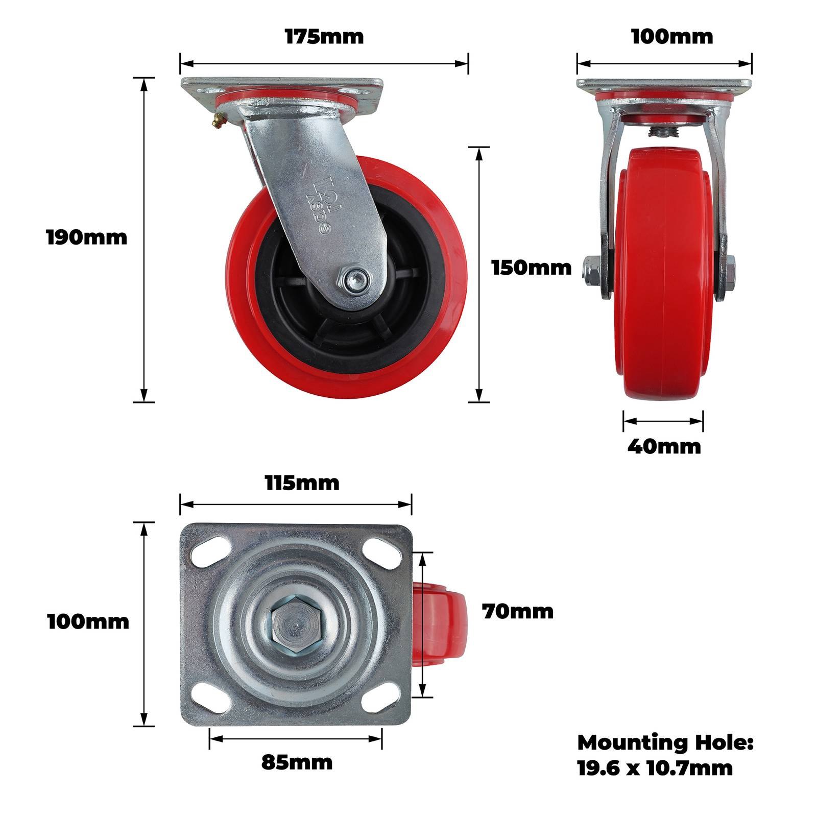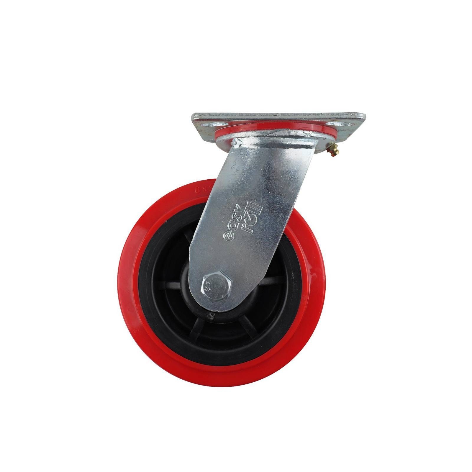 150MM RED URETHANE SWIVEL PLATE CASTOR