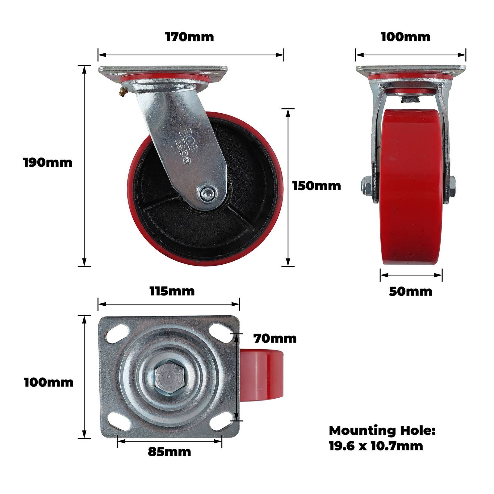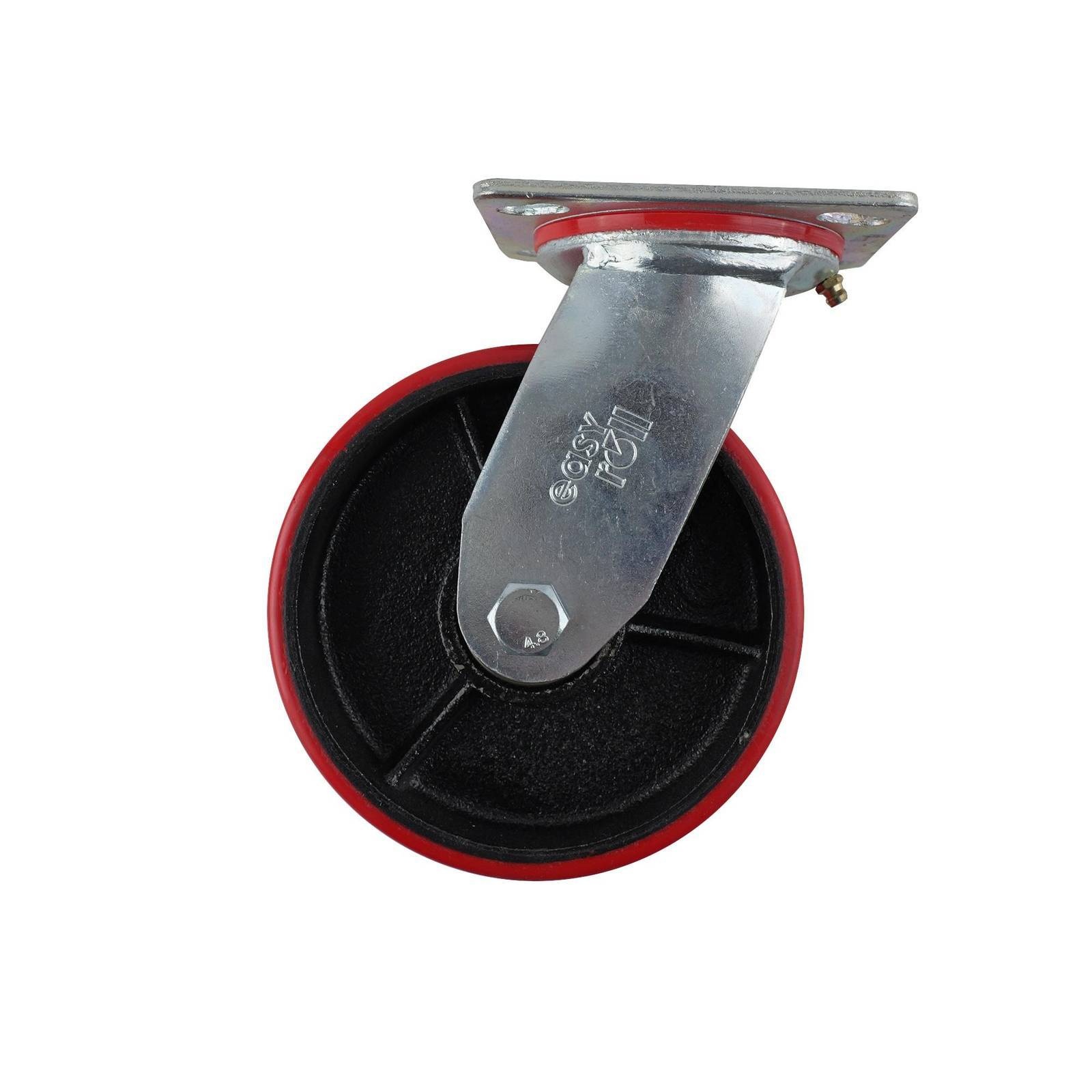 150MM RED URETHANE/CI SWIVEL PLATE CASTOR