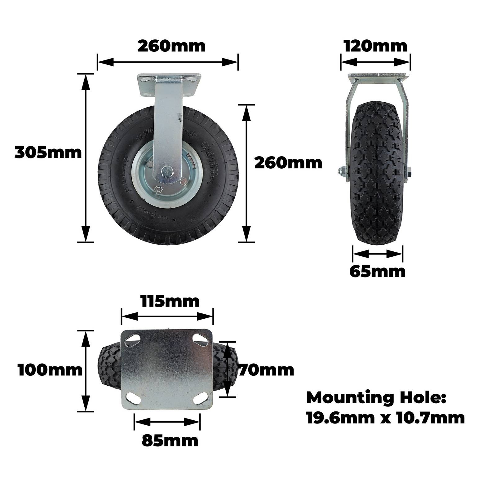 3.50-4 FIXED PNEUMATIC CASTOR offers a robust solution for fixed applications where precision and durability are vital. Designed with ball bearings and a single raceway system, this castor excels in supporting heavy loads up to 225 kgs. Its rubber pneumatic wheel and steel construction provide reliable shock absorption and long-lasting performance, making it ideal for DIY projects and industrial tasks requiring consistent, smooth movement.Detailed