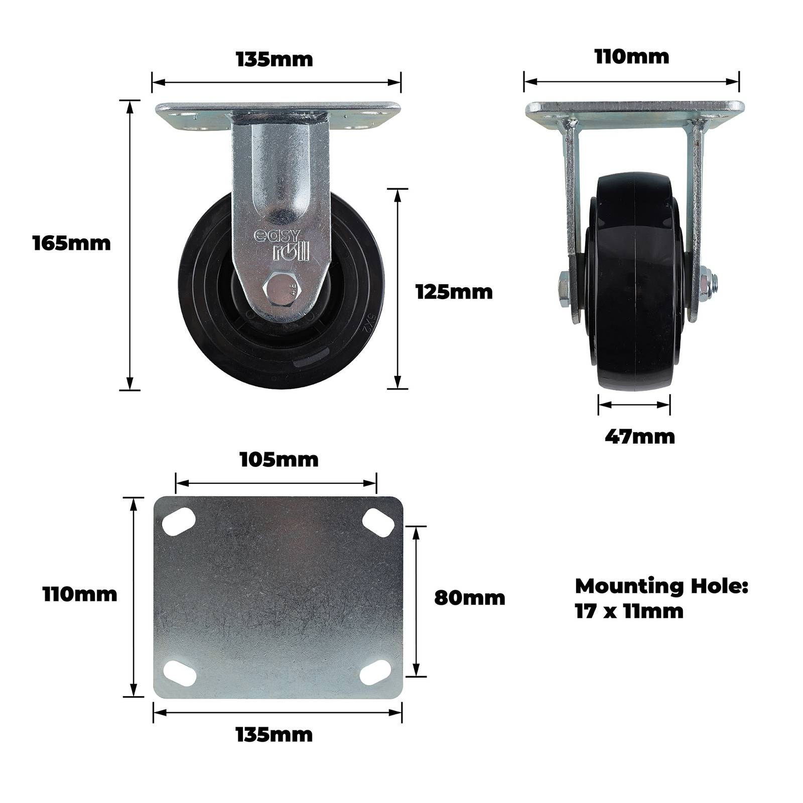 125MM BLACK NYLON FIXED PLATE CASTORThis fixed castor is precision-engineered for demanding DIY applications. Designed for robust performance, it features precision bearings and a durable steel housing capable of supporting up to 410 kgs. The polyurethane wheel provides reliable grip and quiet operation, making it ideal for workshops and retail settings. Its technical construction ensures longevity and stability, offering a practical solution for enthusiasts who value efficient manoeuvrability and dependable load support.