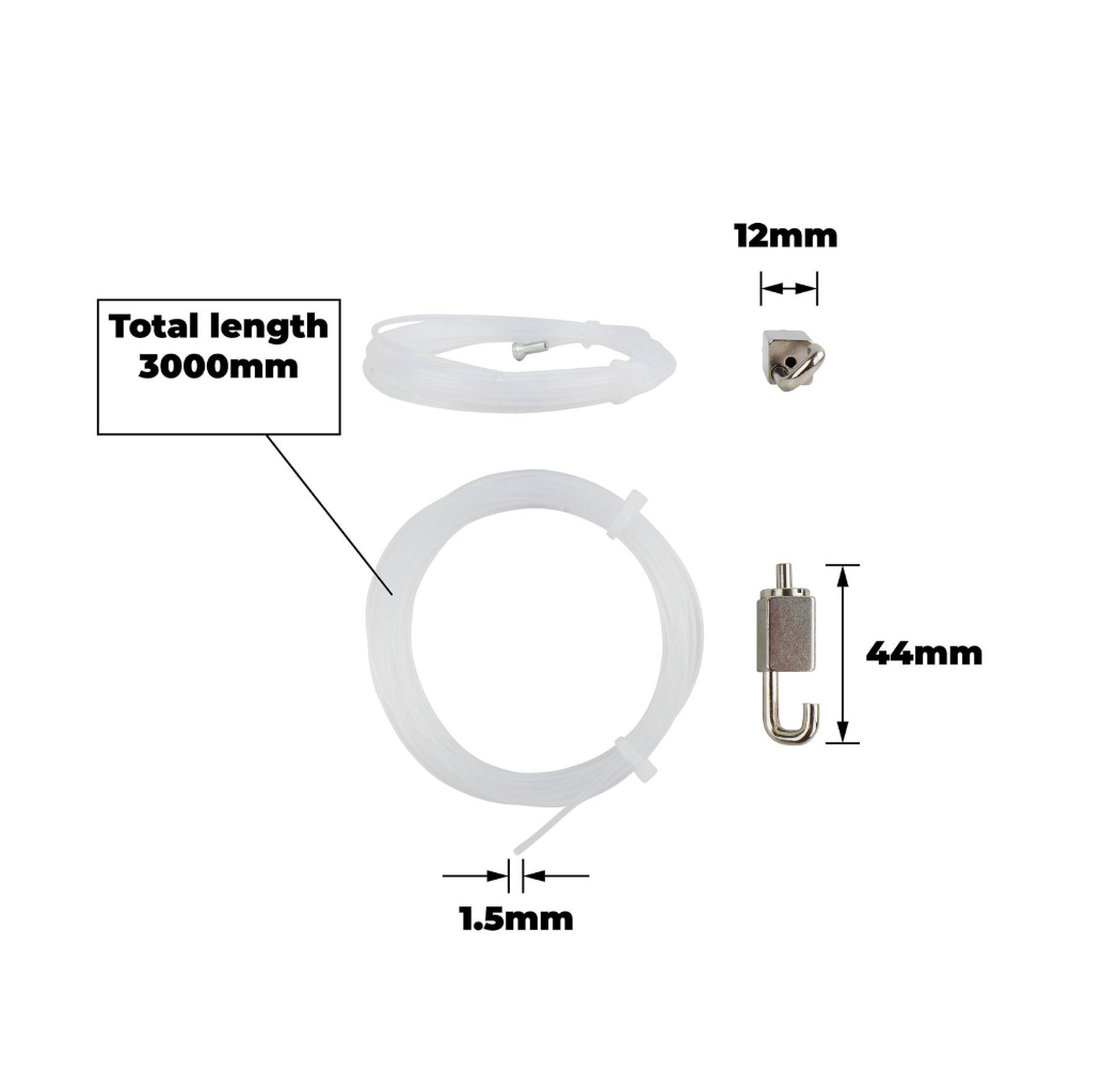 EVERHANG Adjustable Hook & Track Nylon Line 25KG is a robust wire and hook set designed for precision hanging solutions in DIY projects. Made from strong steel combined with durable nylon, its adjustable configuration ensures a secure and customised installation for various applications. The product’s white and grey finish lends a neat aesthetic while its lightweight build offers ease of handling. Ideal for workshop and home settings, it provides reliable support for heavy loads and frequent repositioning.Detailed