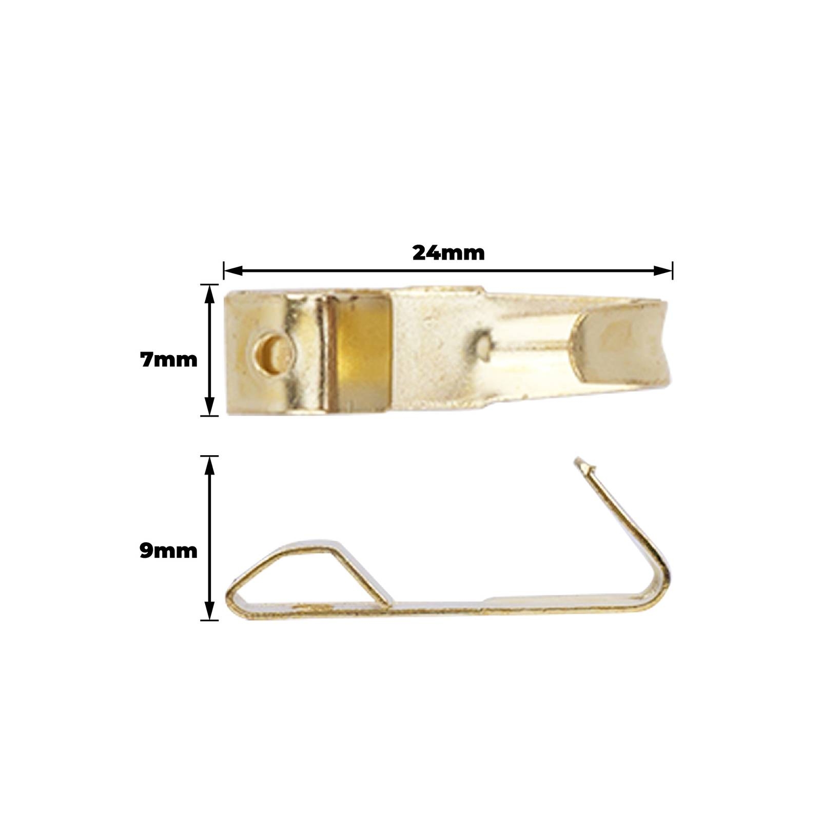 Picture Hooks Medium Brass Plated PK25 is designed for securely hanging artwork and mirrors in both residential and professional settings. Ideal for DIY enthusiasts, these medium-sized hooks deliver a durable brass-plated finish that withstands the test of time. Their straightforward design ensures ease of installation and reliable support, making them a practical choice for a range of projects. Supplied in a pack of 25 and packaged in a polypropylene polybag, they offer both convenience and value.Detailed