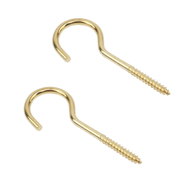 Screw Hooks 80mm Brass Plated PK2