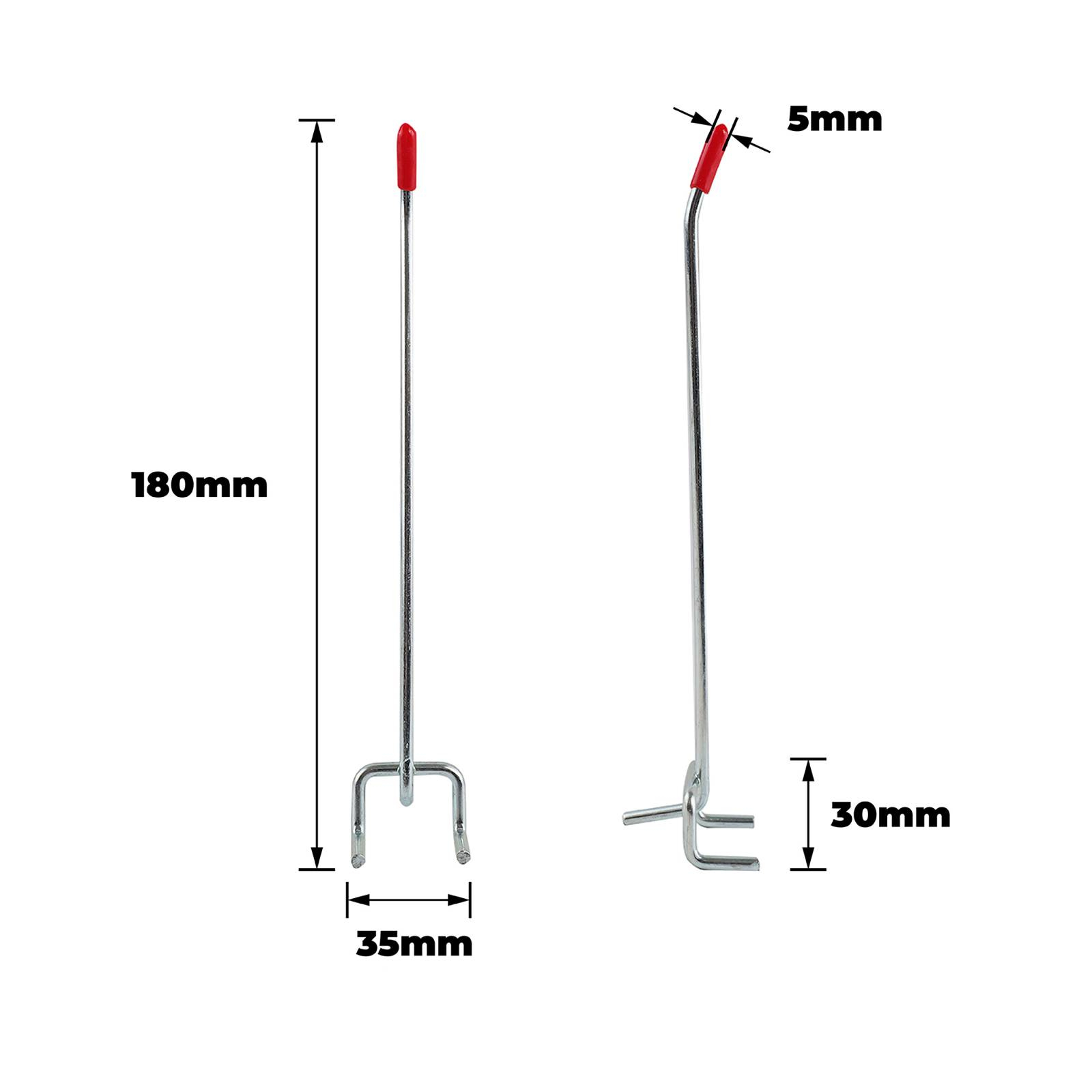 The EVERHANG HOOKS PEGBOARD are ideal for organising tools and equipment. This 3-pack of 150mm single hooks is constructed from durable steel, ensuring a robust hold for various items on your pegboard. The chrome and red finish adds a sleek, professional touch to your workspace, making it perfect for DIY enthusiasts looking to maximise efficiency and style.Detailed