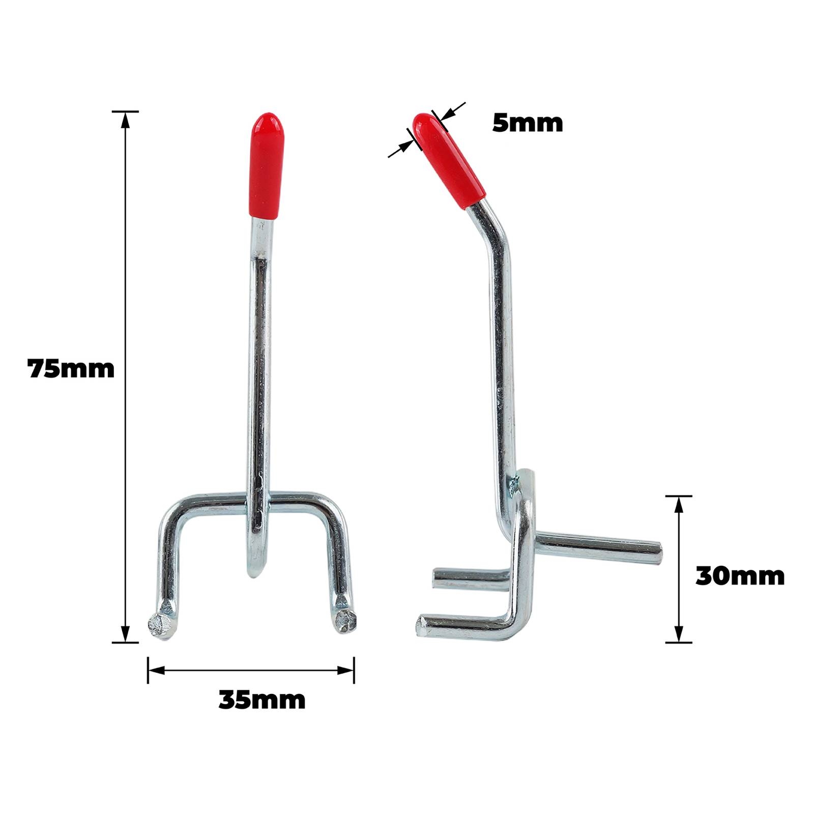 The HOOKS PEGBOARD++50MM SINGLE 4PK by EVERHANG is an essential addition to any DIY enthusiast's toolkit. Designed for efficient organisation, these sturdy steel hooks provide a reliable solution for hanging tools, crafts, or other items on pegboards. With a stylish chrome and red finish, they not only enhance functionality but also add a touch of personality to your workspace.Detailed