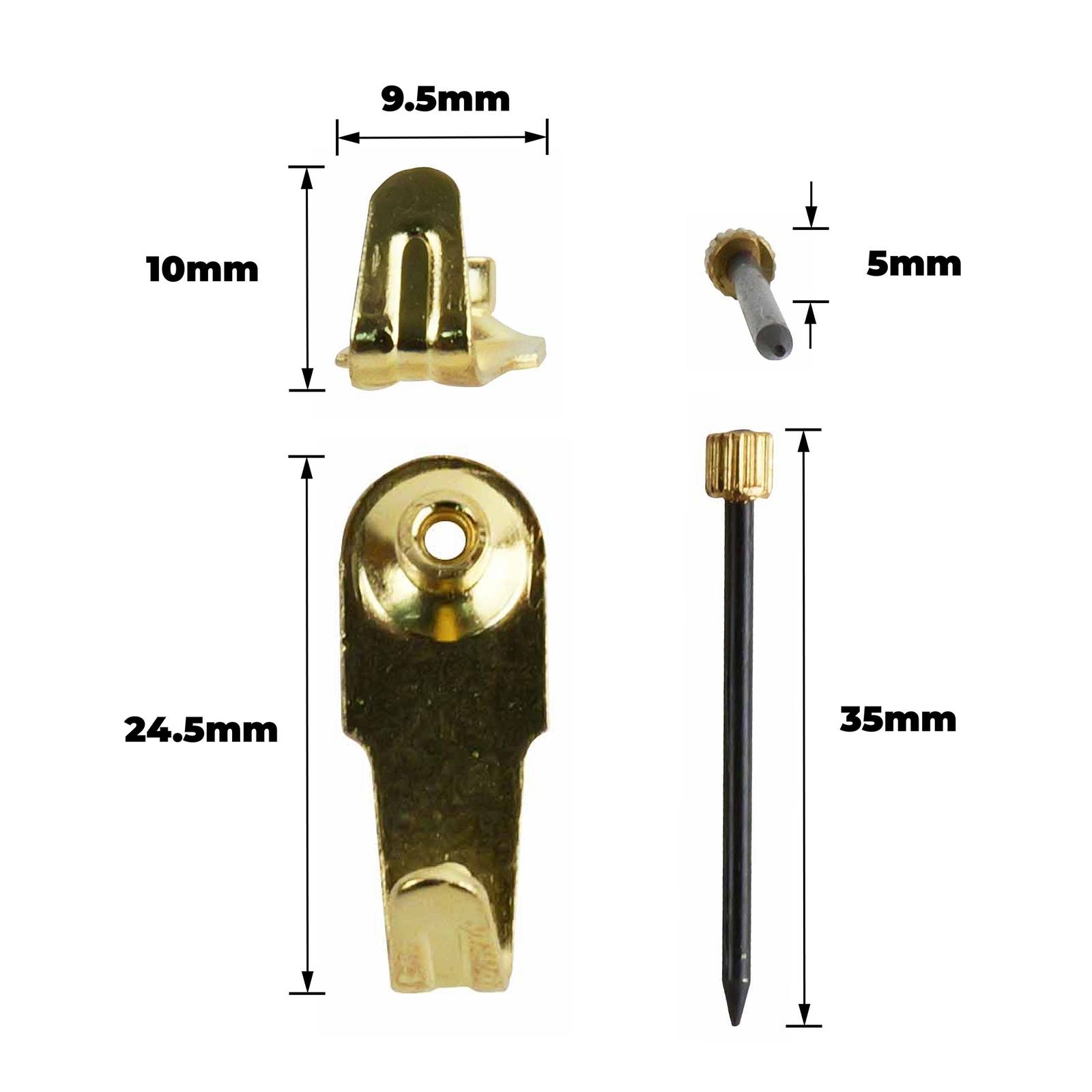 8KG PICTURE HANGER 8PK – This set of picture hangers is crafted from steel with a brass-plated finish, offering reliable support for hanging framed artwork and photographs. Ideal for DIY projects and professional applications, these hangers provide robust, secure mounting properties. They are designed to endure daily use and meet technical expectations, making them valuable for both retail and online buyers who prioritise practical, technical specifications. Packaged neatly in an LDPE polybag for protection.Detailed