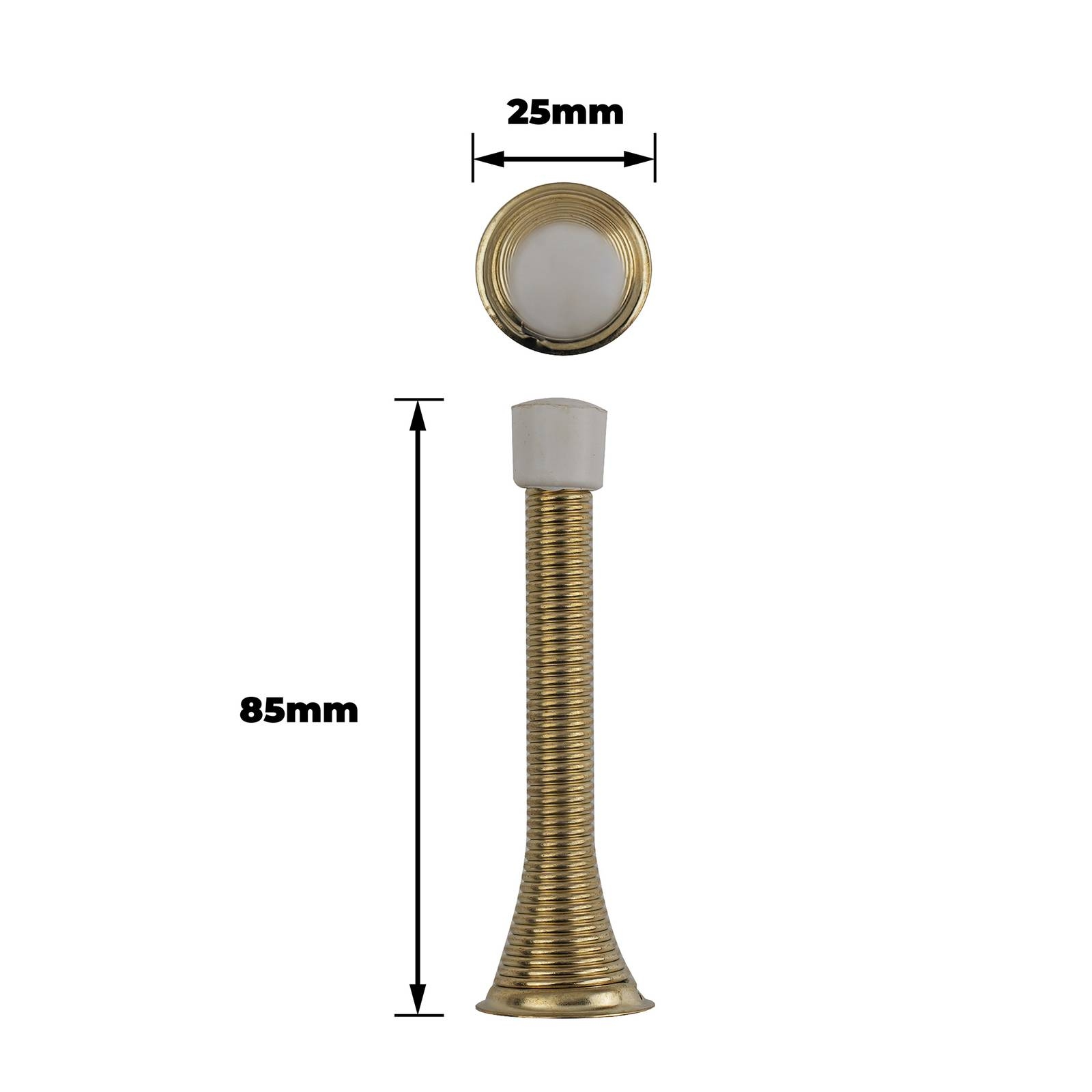 Spring Door Stops Brass Plated PK2 are engineered for reliable, precise door control solutions. Designed to prevent door slamming and unwanted movement, they are ideal for DIY projects and modest commercial settings. The brass-plated finish ensures durability and adds a stylish touch. With a spring mechanism that delivers controlled force and effective performance, these door stops offer technical precision and robust functionality. Each pack contains two units securely packaged in a polypropylene polybag.Detailed