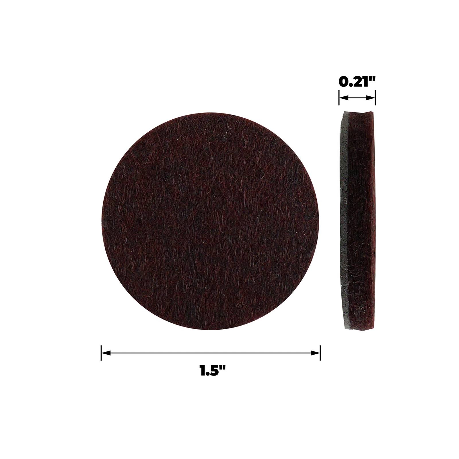 softtouch 1 1/2"BROWN FELT PADS 24PCThese round felt pads are engineered for effective surface protection and noise reduction during furniture movement or equipment placement. Designed with DIY enthusiasts in mind, they offer a practical solution for safeguarding floors against scratches and wear. The high-density material ensures durability, while the 1 1/2-inch size fits a variety of applications, from home renovations to professional installations. Each pack contains 24 pads, providing an economical option for multiple projects.