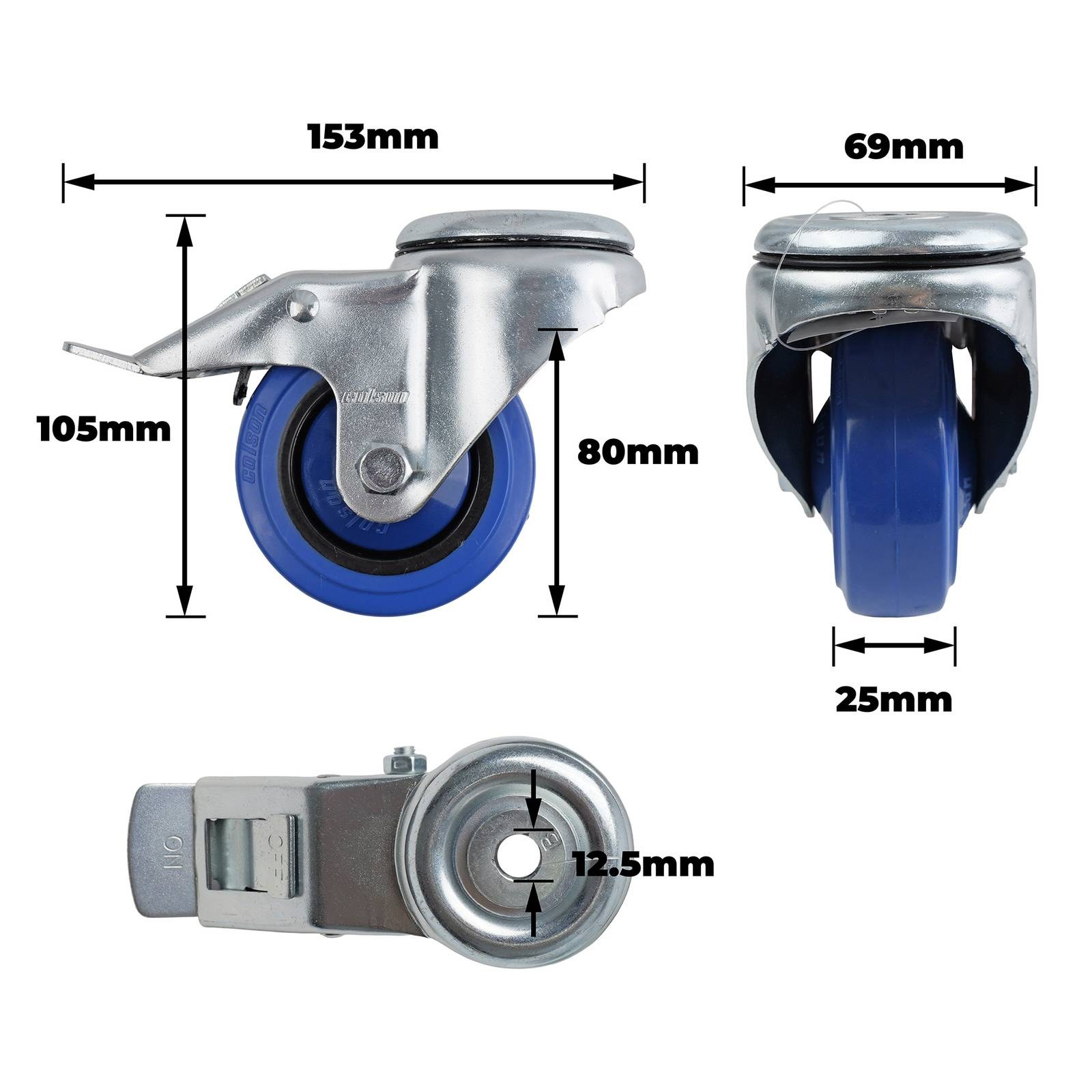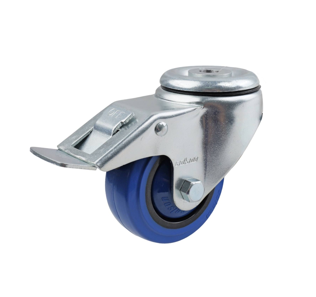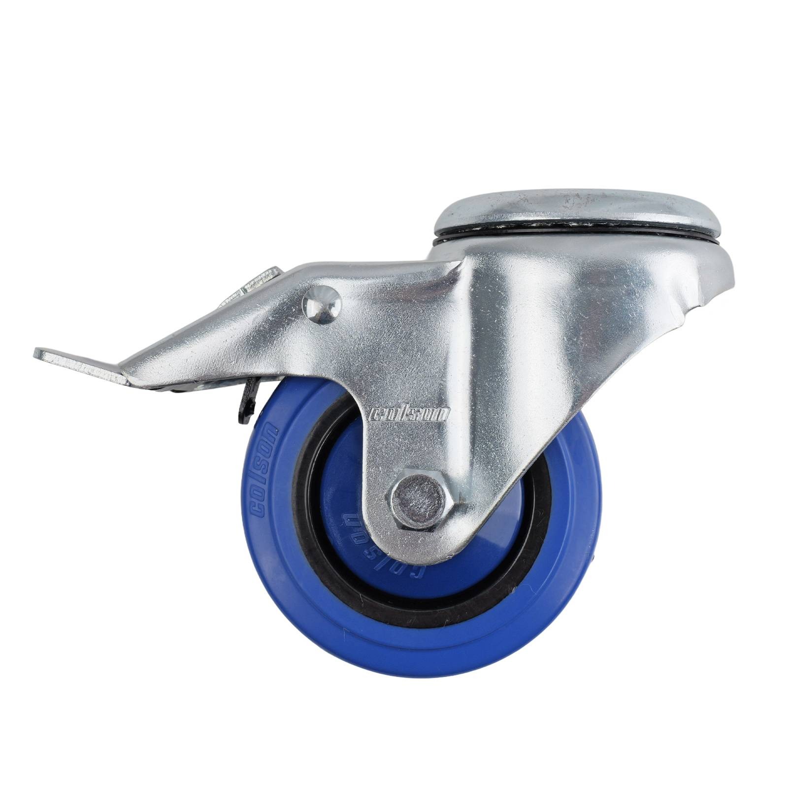 COLSON 80MM BLUE RUBBER BOLT HOLE BRAKE CASTOR