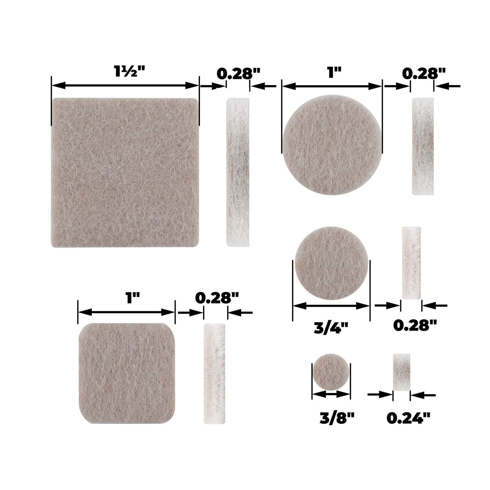Ultimate Assorted Beige Self-Adhesive Furniture Sliders, Felt Pads Value Pack with Gorilla Glue Technology (184-Piece)
