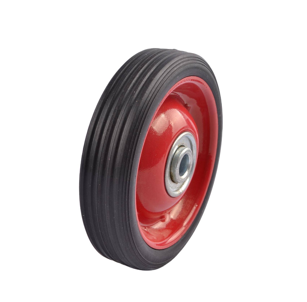 BLACK RUBBER TYRE 150MM RED ME is a durable rubber wheel engineered for a range of DIY and industrial applications. Designed with a steel wheel core, hub and bearings, this tyre is capable of handling loads up to 40kgs. Its robust construction and precise manufacturing ensure dependable performance for projects requiring smooth movement and resilience. Ideal for DIY enthusiasts, this component combines practicality with technical advantages for reliable and efficient operation.Detailed