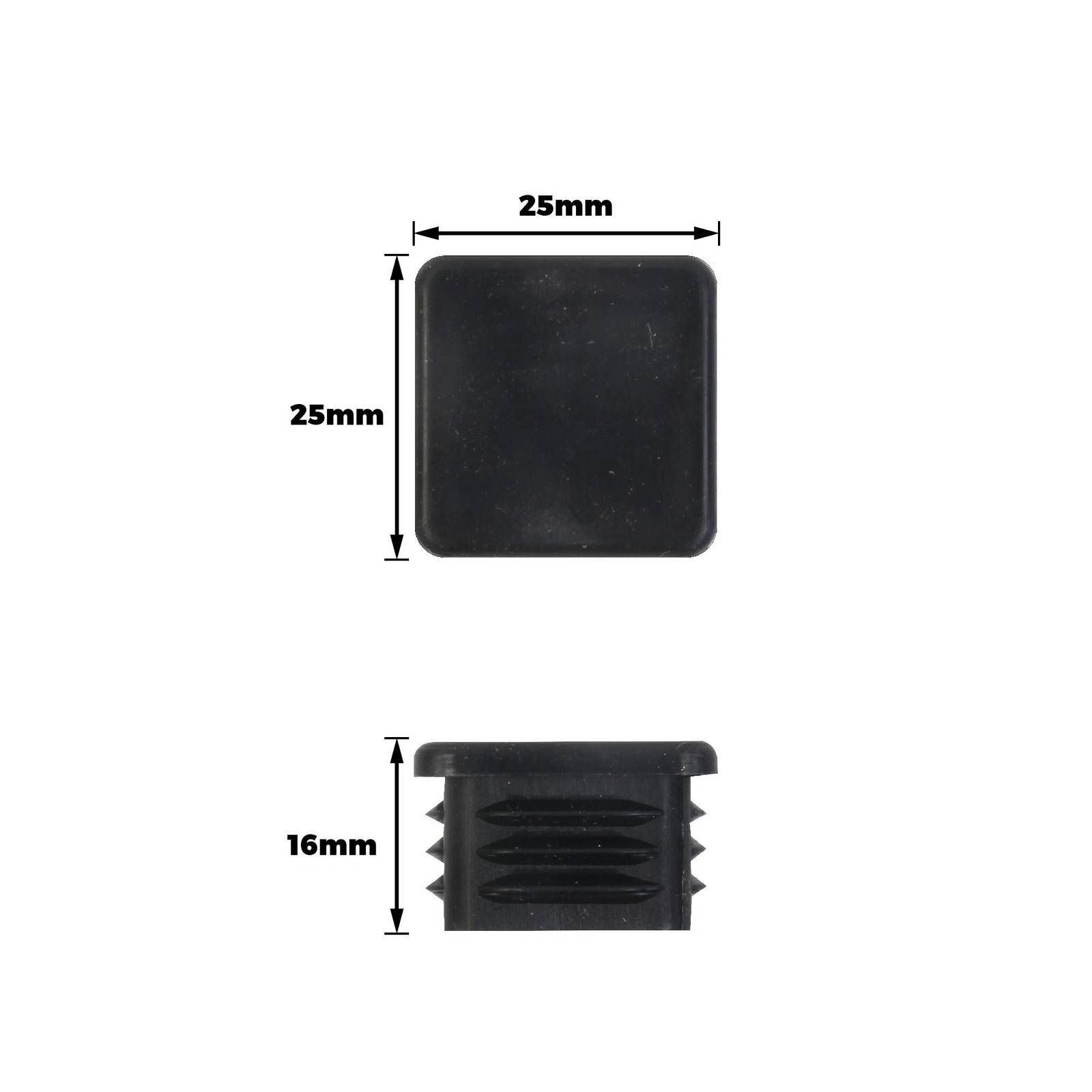 C/TIP SQU INT 25 BLK PLASTIC 4PCS is a set of four internal leg tips made from durable polypropylene. Designed with a square shape, these black plastic components are ideal for secure fittings and support in various DIY projects. Their lightweight construction and precise engineering make them a practical, reliable solution for technical applications where stability and precise alignment are crucial.Detailed