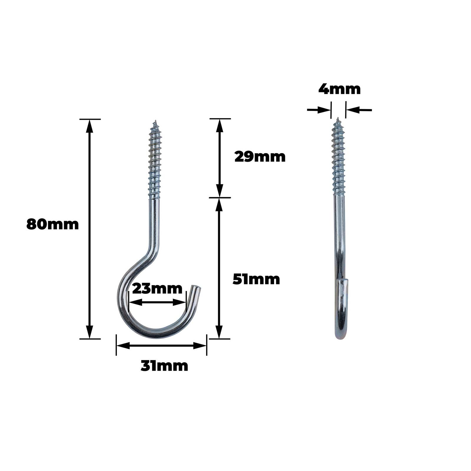 Key Features:- Robust 80mm screw hook design suitable for various household and workshop tasks.