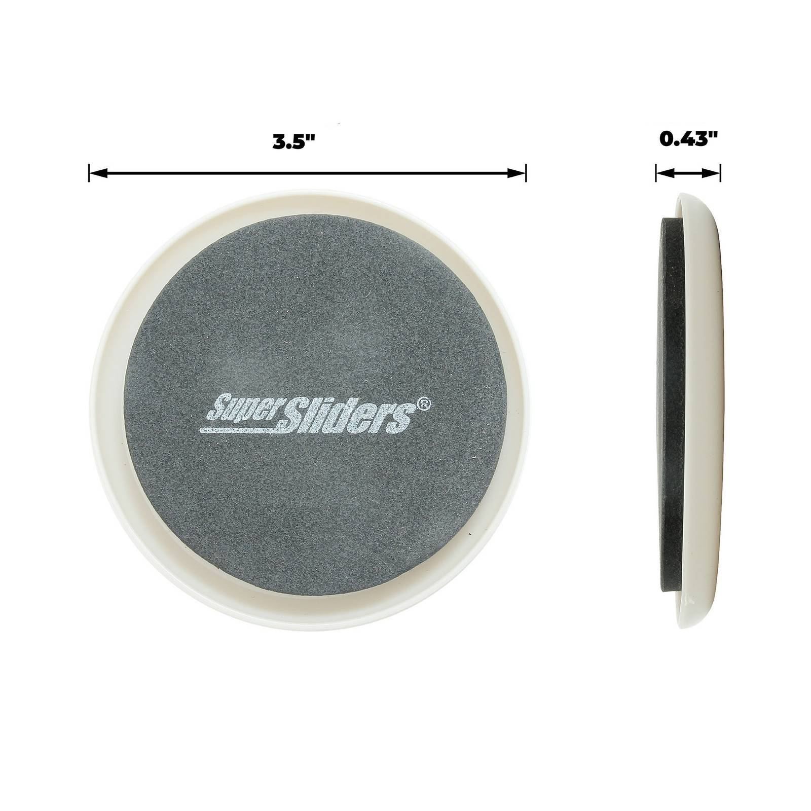 Super Sliders 3-1/2" REUSABLE SLIDERS -4PK are designed to provide reliable furniture movement solutions for DIY enthusiasts. These sliders are engineered from durable polypropylene and ethylene-vinyl acetate copolymer to ease the burden of repositioning heavy items while protecting floors. Their compact, round design ensures consistent performance and simplifies the process of moving furniture in residential and commercial spaces.Detailed