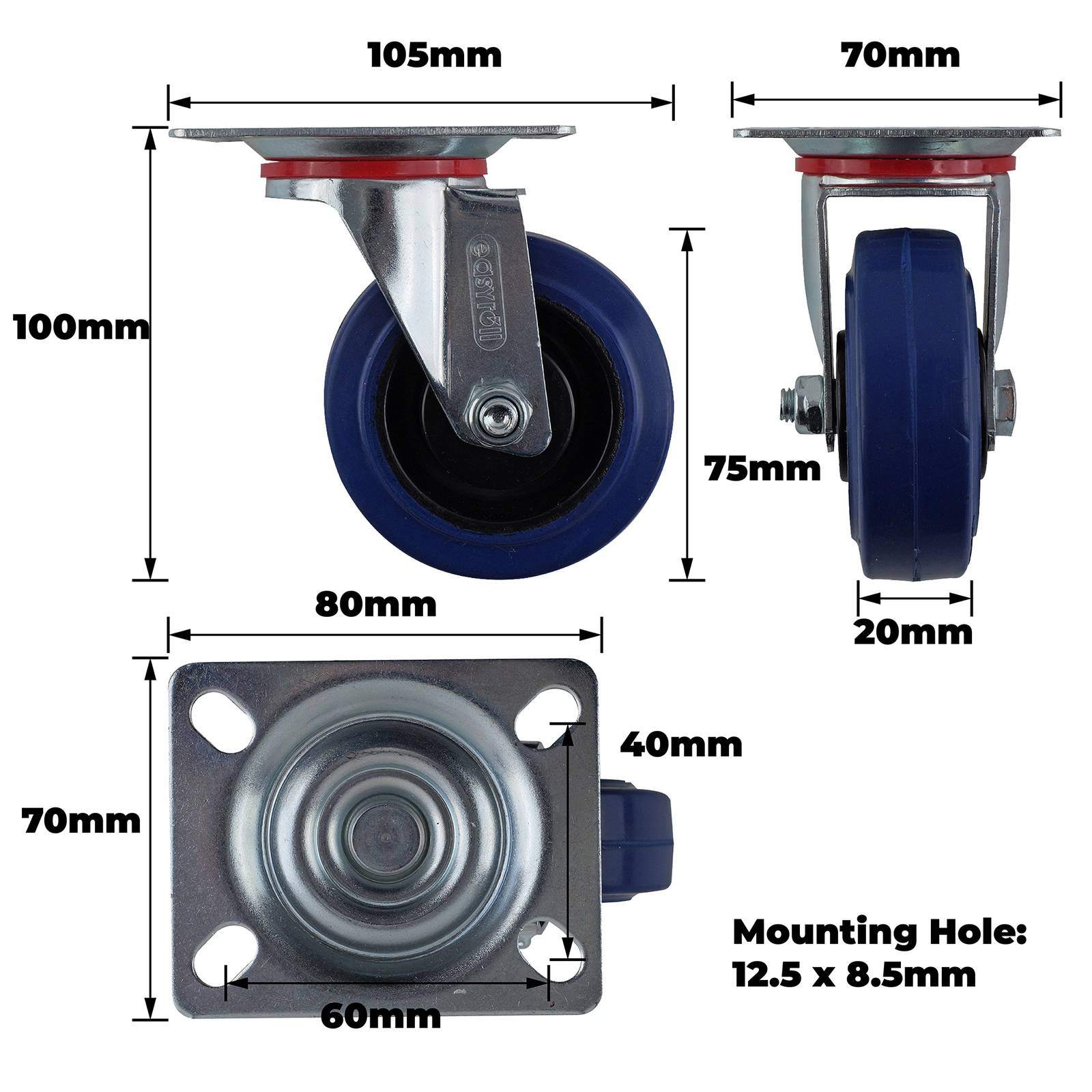 75MM BLUE ELASTIC RUBBER SWIVEL PLATE is a precision-engineered swivel castor designed for demanding DIY projects. With a robust steel housing and single raceway design, it supports loads up to 50 kgs reliably. The blue elastic rubber component enhances traction and overall durability. Its straightforward design and proven technical performance make it an ideal choice for those who prioritise practical solutions, whether for home improvements or commercial applications.Detailed