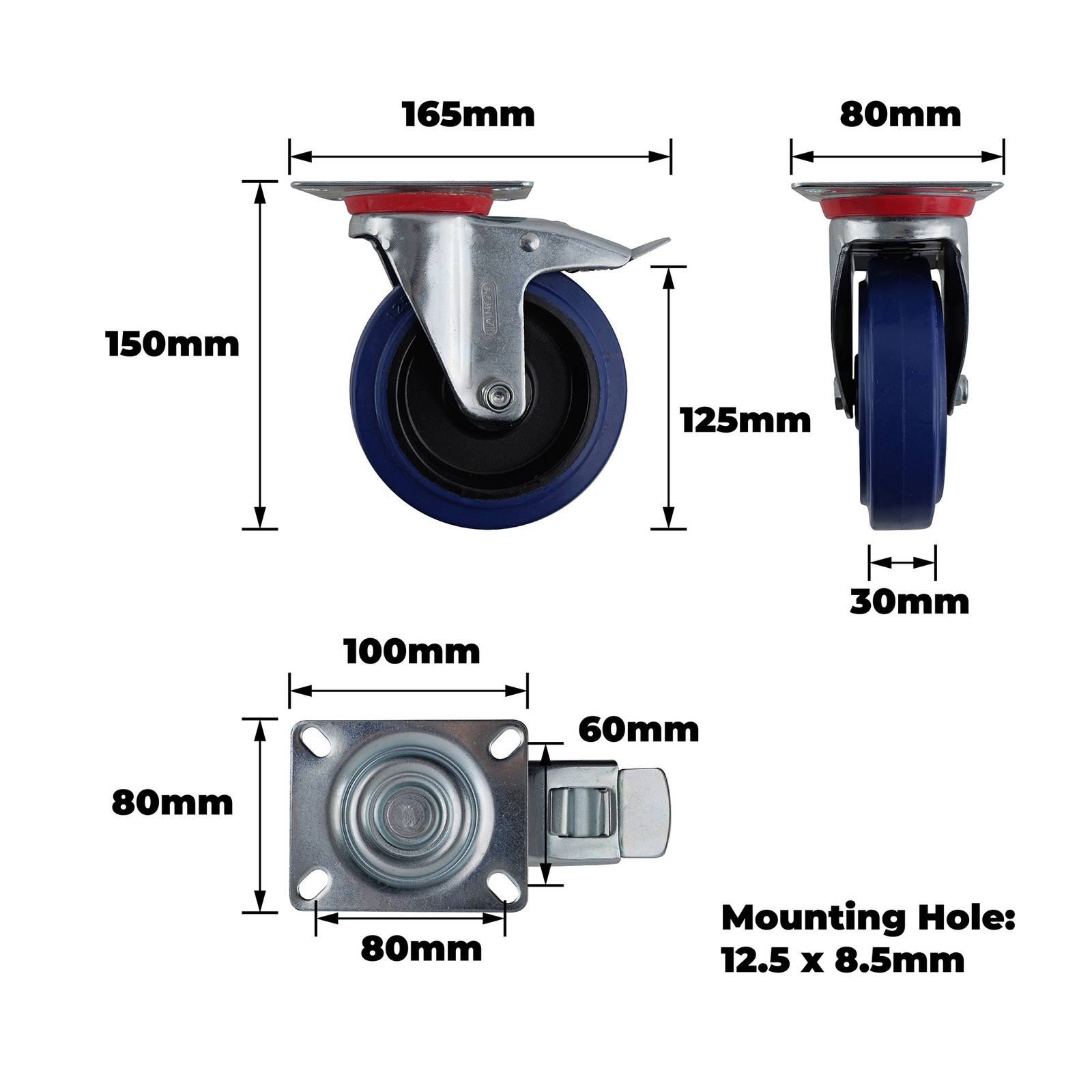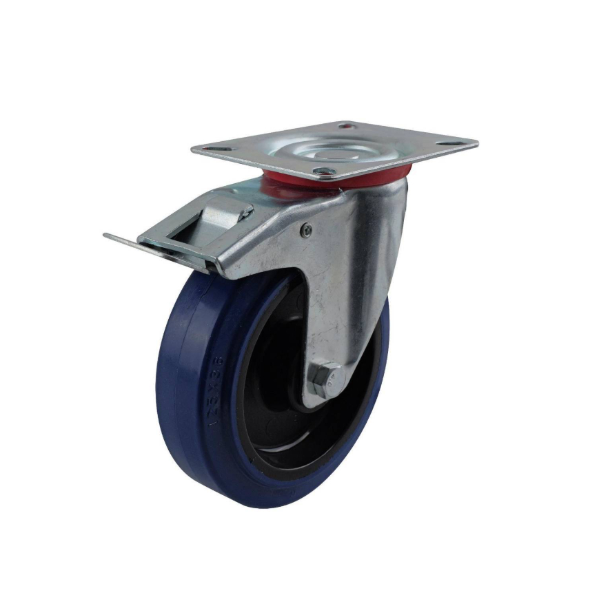 125MM BLUE ELASTIC RUBBER SWIVEL + BRAKE PLAT