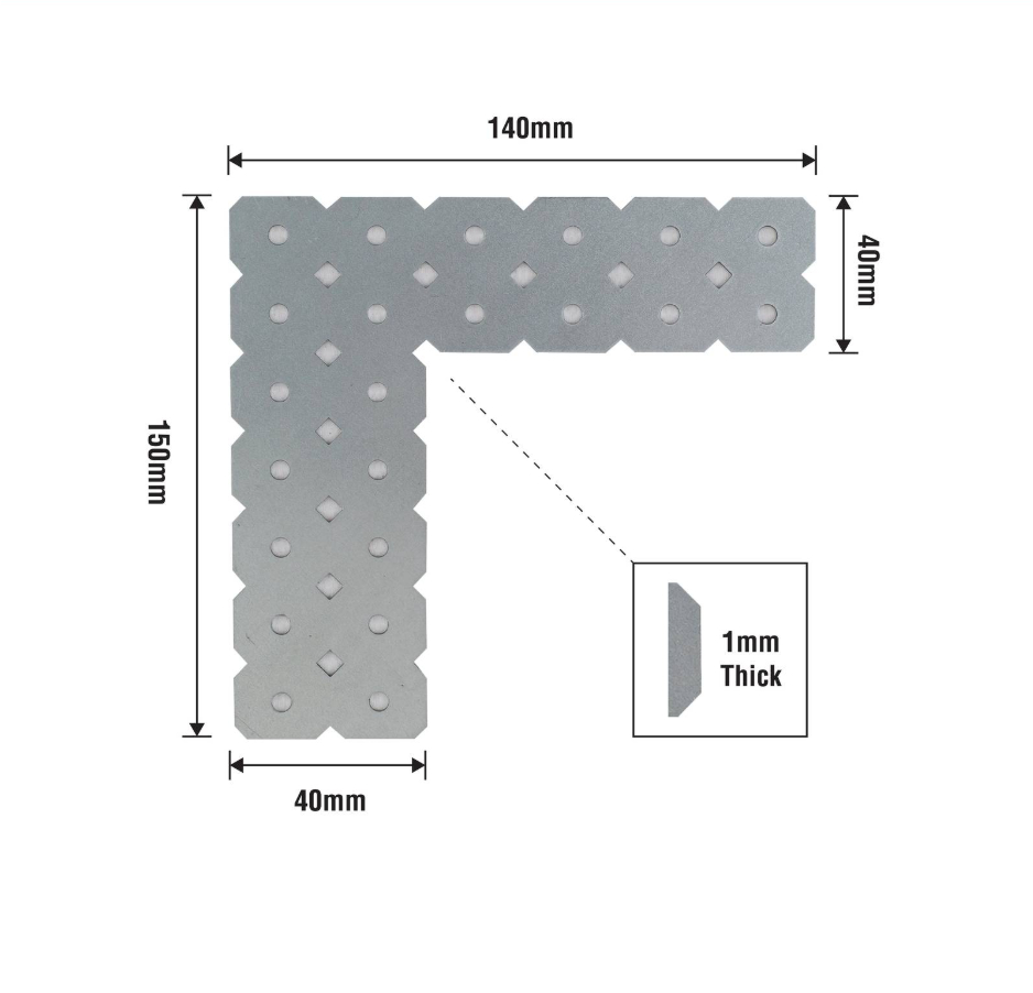 Carinya by RCR Mending Plate MAB CARINYA++150X40X140X50X1MM L MABL06 is a precision-engineered steel component designed for structural repairs and bracket applications. The zinc-plated finish provides excellent corrosion resistance, making this mending plate a practical choice for experienced DIY enthusiasts. Its robust design and technical specifications allow for secure and reliable support in both residential and light industrial projects.Detailed