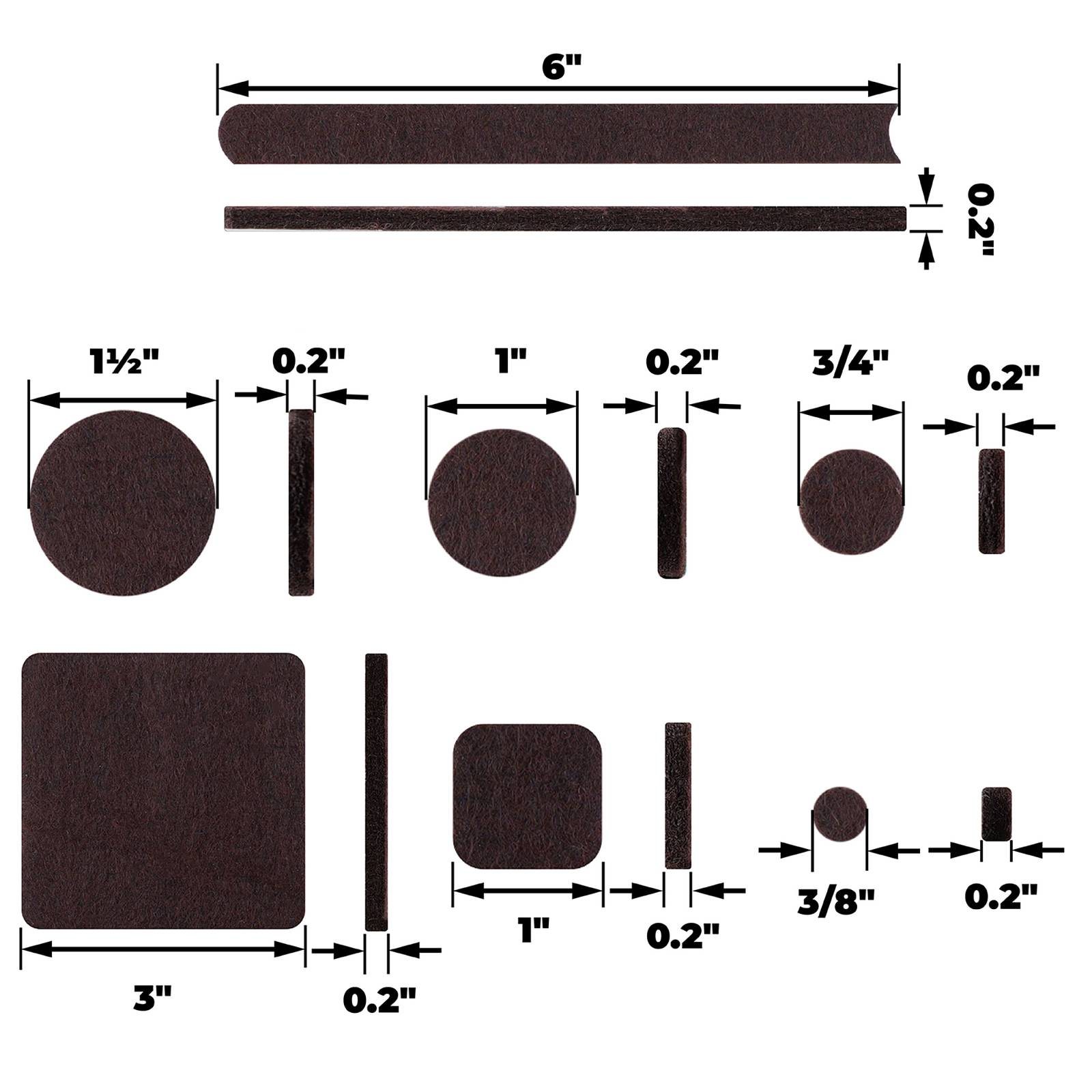 Assorted Brown Self-Adhesive Round Furniture Sliders, Felt Pads for Hard Floors Value Pack (192-Piece)
