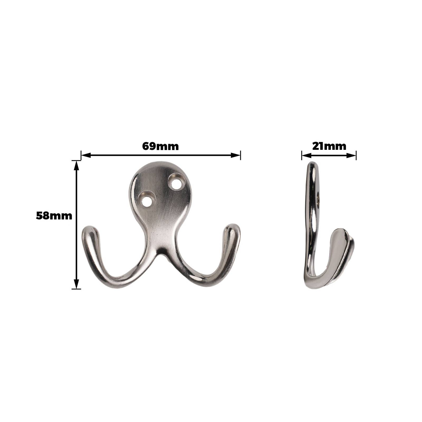 Double Robe Hook Satin Nickel PK2 is a decorative hook set designed to combine functionality and contemporary style for various hanging applications. Constructed from durable aluminium with a satin nickel finish, these four hooks offer a secure and elegant solution for organising robes and accessories in bathrooms, bedrooms or corridors. Ideal for DIY projects, they deliver reliable performance and an easy installation experience, meeting the technical expectations of knowledgeable buyers.Detailed