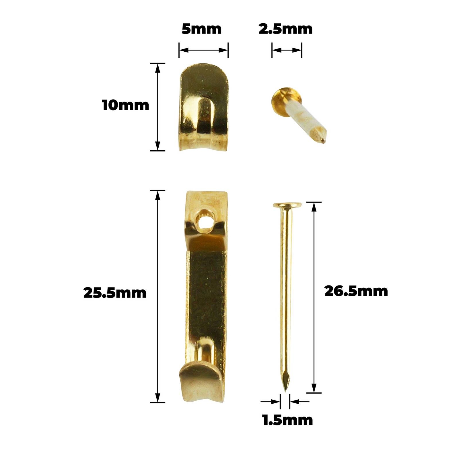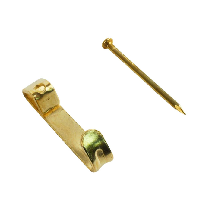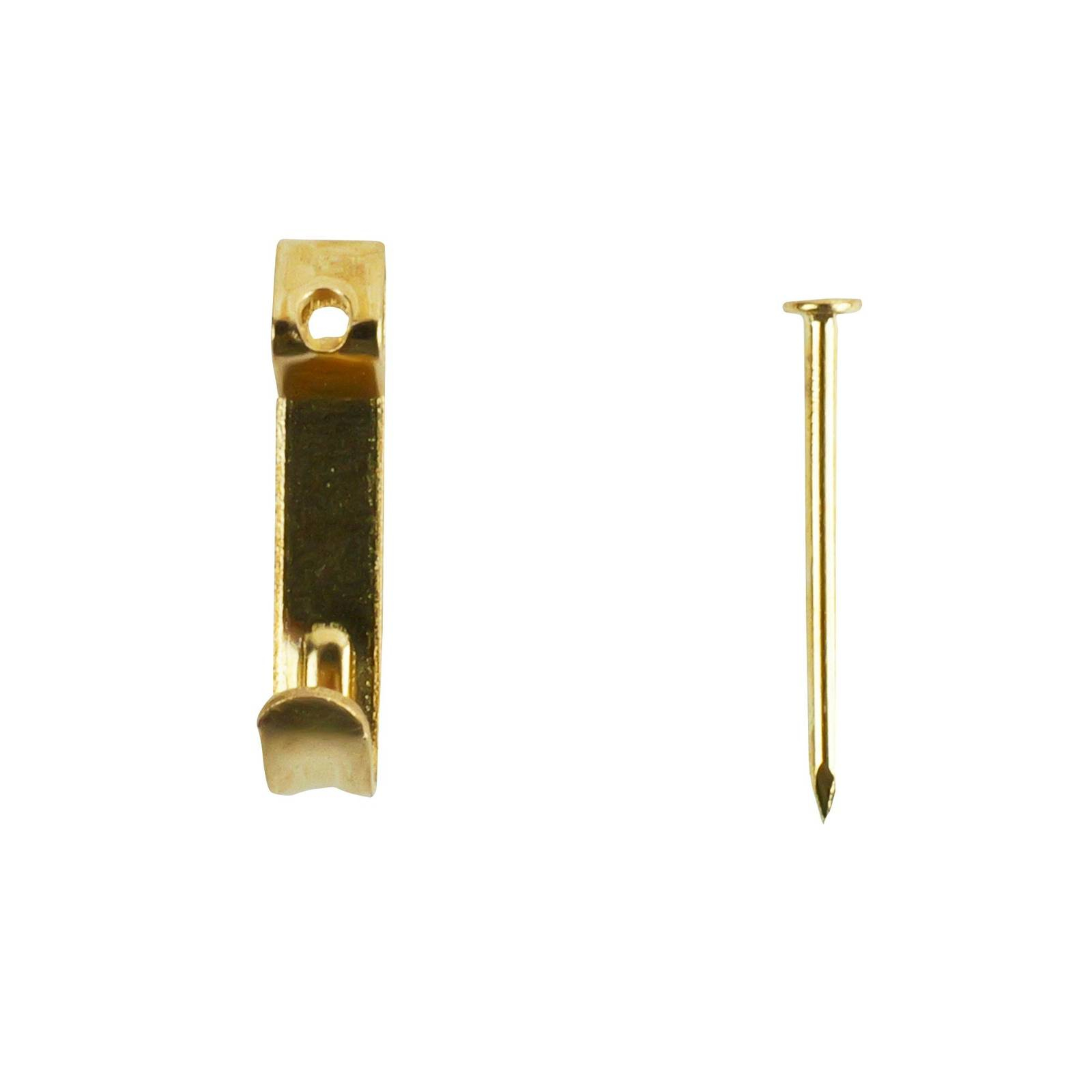 SELECT HARDWARE Picture Hooks & Pins Small Brass Plated PK20This product is a set of small brass-plated picture hooks designed for hanging pictures and decorative items with ease. Constructed from steel, these durable hooks provide reliable support for various lightweight frames and artworks. Ideal for DIY enthusiasts, they offer a practical solution with precise specifications for secure mounting. Packaged in a polybag and protected with polypropylene packaging, they ensure consistent quality suitable for both retail and online projects.