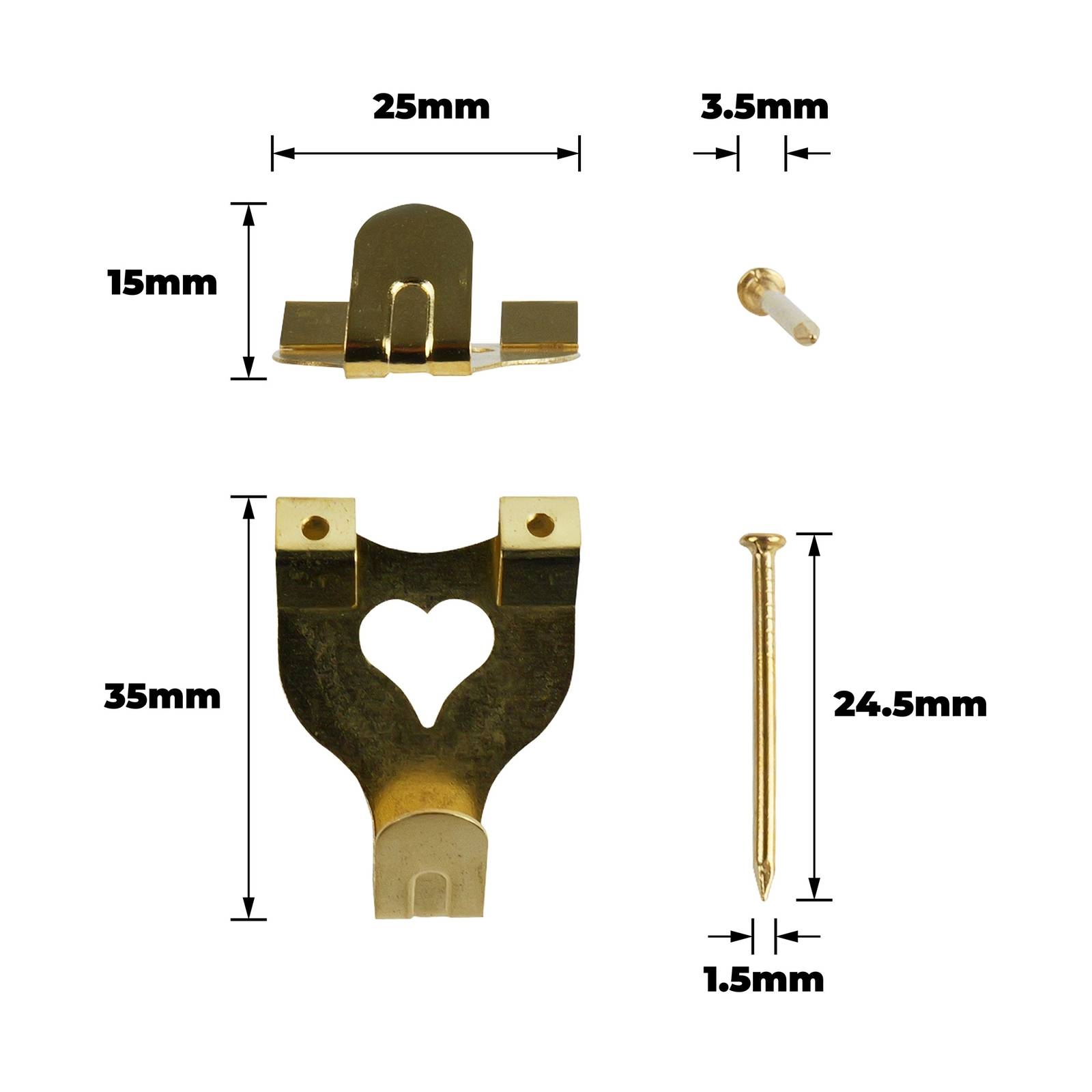 SELECT HARDWARE Picture Hooks Large Brass Plated PK20 are engineered for DIY enthusiasts seeking a robust and reliable solution for hanging picture frames and wall decorations. Made from durable steel with an attractive brass plated finish, these hooks provide strong support and secure mounting for heavier items. They are ideally suited for retail and online buyers who value precise technical specifications and practical application in home improvement projects.Detailed