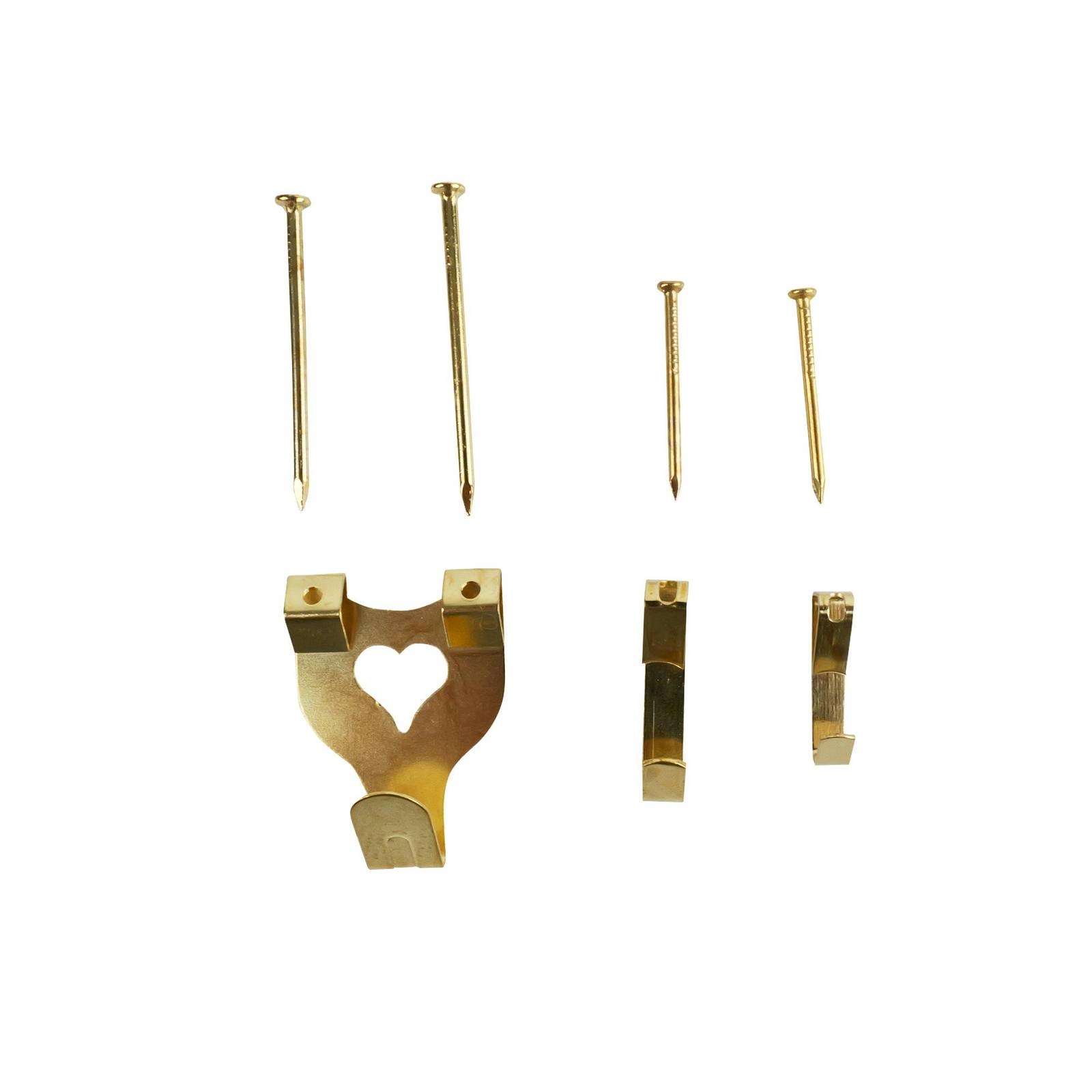 SELECT HARDWARE Picture Hook Multi Pack Brass Plated PK55This multi-pack consists of 55 brass-plated, high-quality steel picture hooks designed for DIY enthusiasts. Ideal for hanging frames, mirrors and decorative items, these hooks offer reliable strength and durability. Their precise engineering ensures straightforward installation on various wall types. Packaged in a sturdy polypropylene polybag, they are perfect for DIY projects that require dependable, cost-effective mounting hardware.