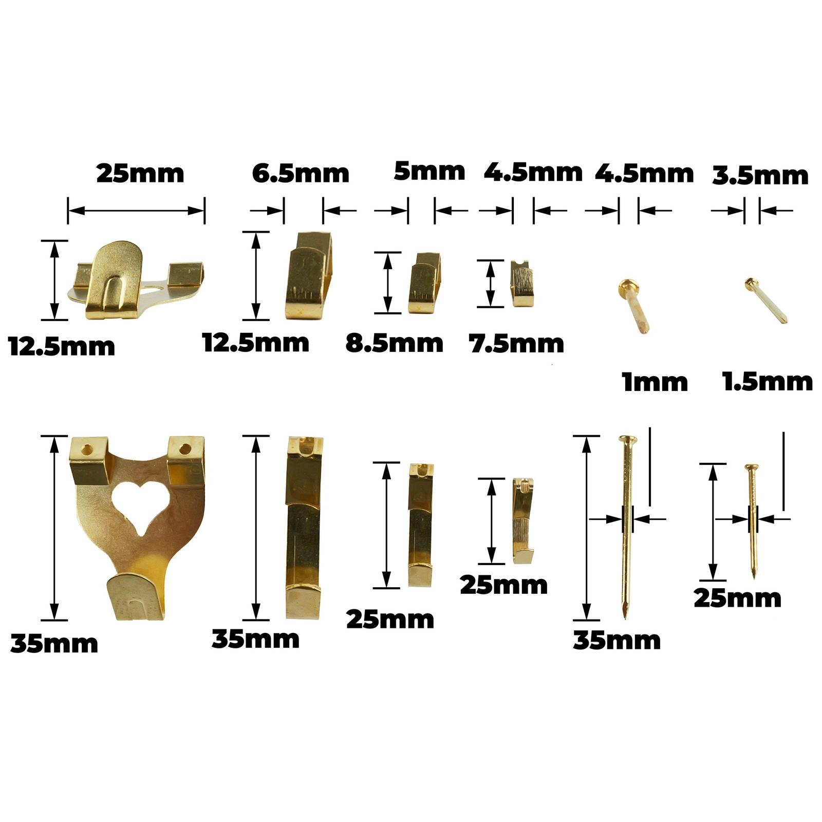Key Features:- Pack includes 55 brass-plated steel picture hooks