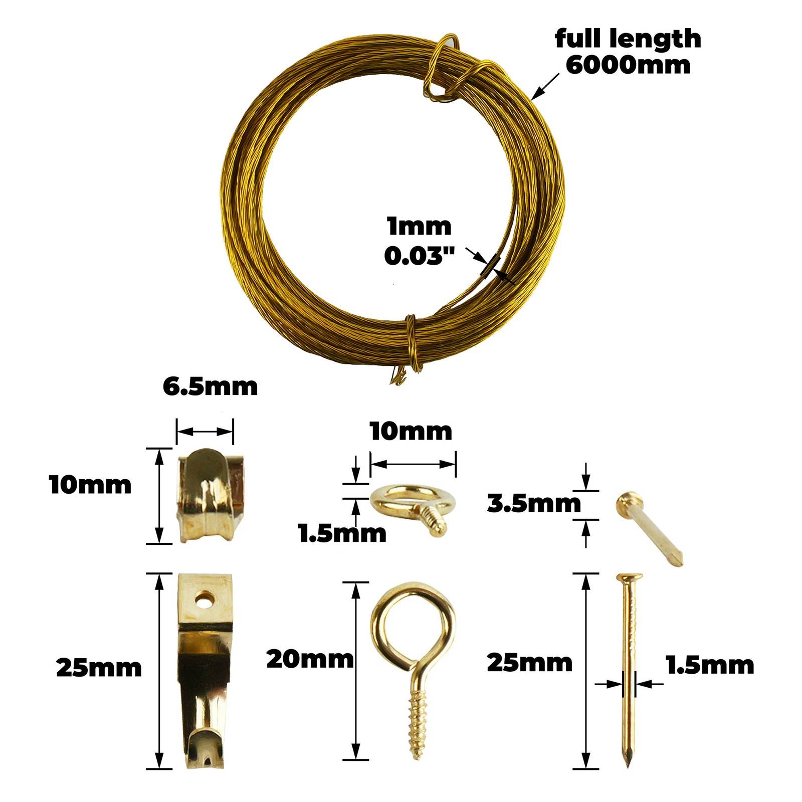 SELECT HARDWARE Picture Hanging Kit Medium Brass Plated PK19 is designed for precision picture hanging on various wall surfaces. This kit includes 19 high-quality components made from durable steel with a brass plated finish, ensuring reliable support for diverse décor projects. It offers a practical solution for DIY enthusiasts seeking efficiency and secure mounting, with neat polypropylene packaging that simplifies storage and transport.Detailed
