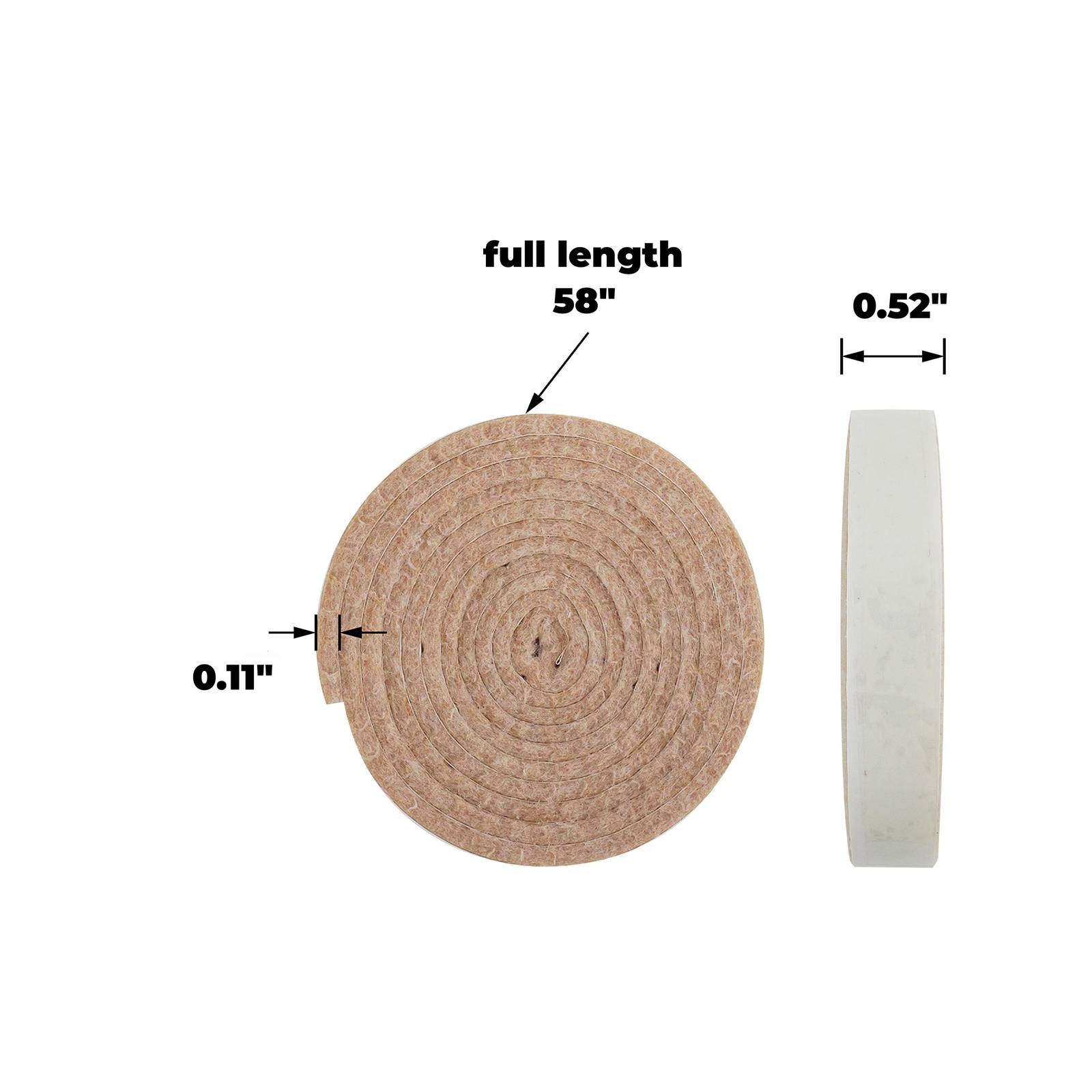 Everbilt FELT GARD 1/2" x 58" BEIGE STRIP is a versatile felt strip designed for various DIY applications. Crafted from high-quality non-woven fabric, this round, beige strip offers a reliable protective barrier for insulating, cushioning, or sealing projects. With precise dimensions and a lightweight design, it serves as a practical solution for custom fit installations in both indoor and outdoor settings, providing durability and ease of use without unnecessary embellishment.Detailed