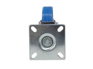 - * 3 inch wide x 3 inch diameter blue polyurethane wheel with double ball bearing swivel and chrome plate mount