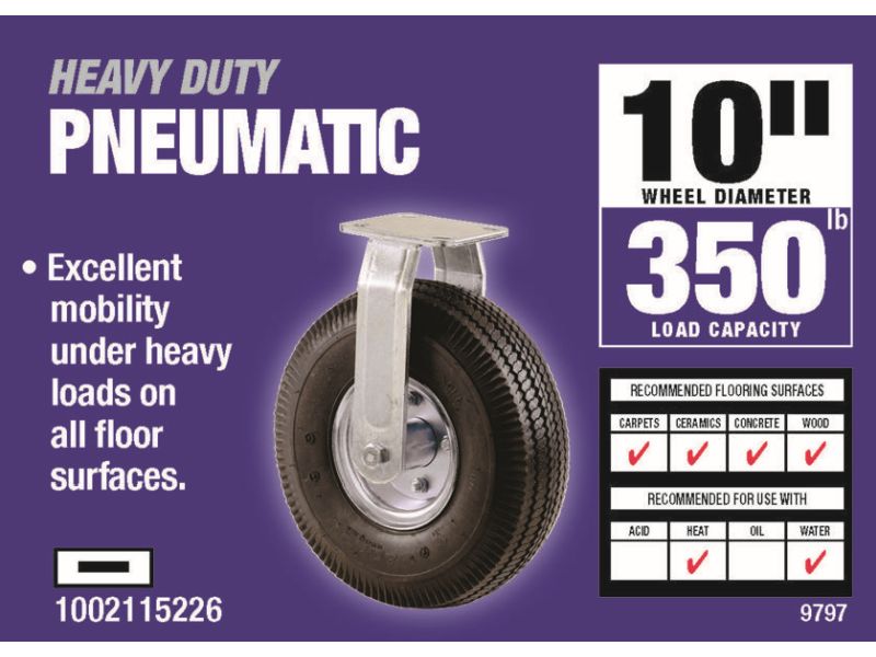 97950098-Inch Pneumatic Caster Wheel, Rigid Plate, Steel Hub with Ball Bearings, 5/8-Inch Bore Centered Axle