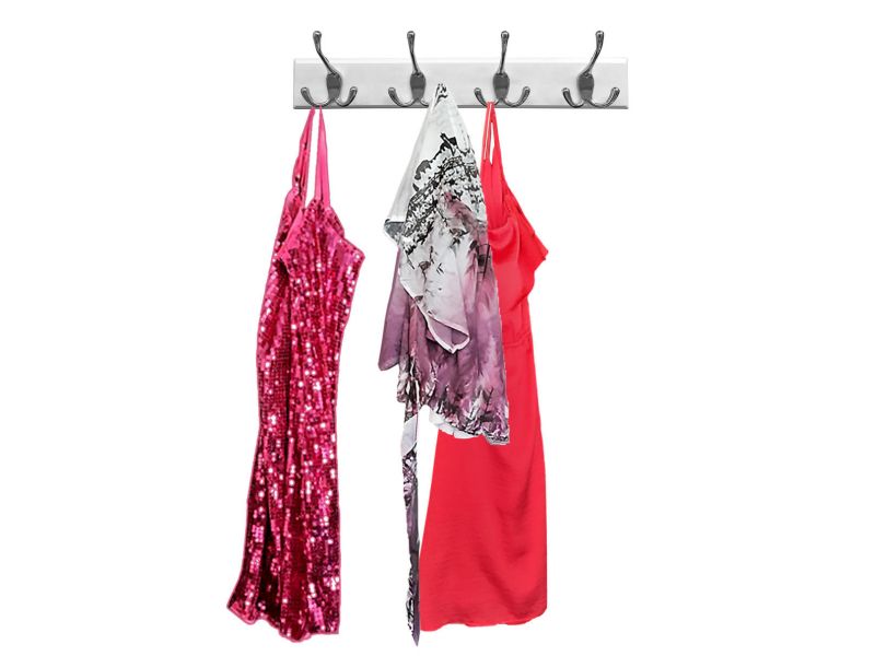 - * 4 Traditional chrome triple prong hooks create 12 hanging points for stylish home organization