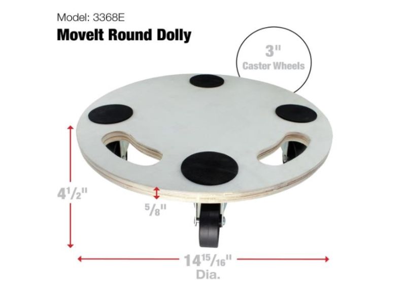 The Shepherd Hardware 3368 Round Platform Dolly is part of our Move-It Home Series. It has a 397-lb load rating and can be used on most household surfaces. This round shape dolly has a 14-15/16″ diameter x 4-1/4″ platform with 3″ heavy duty casters.