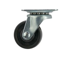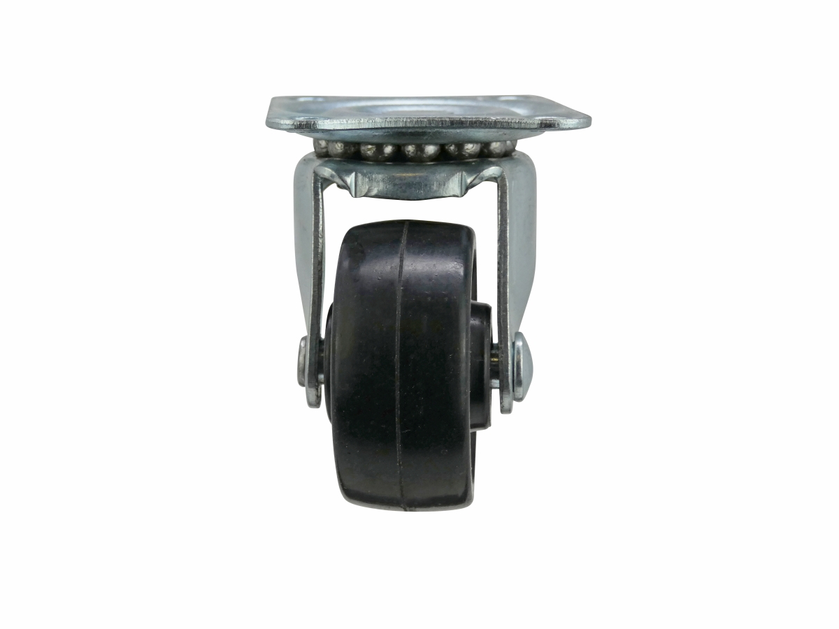 - * 1-1/2 inch diameter black soft rubber wheel with ball bearing swivel and plate mount