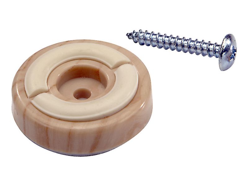 - * Self-adhesive and screw-in woodgrain plastic bases with non-skid rubber underside rings to minimize furniture motion on hard surface floors